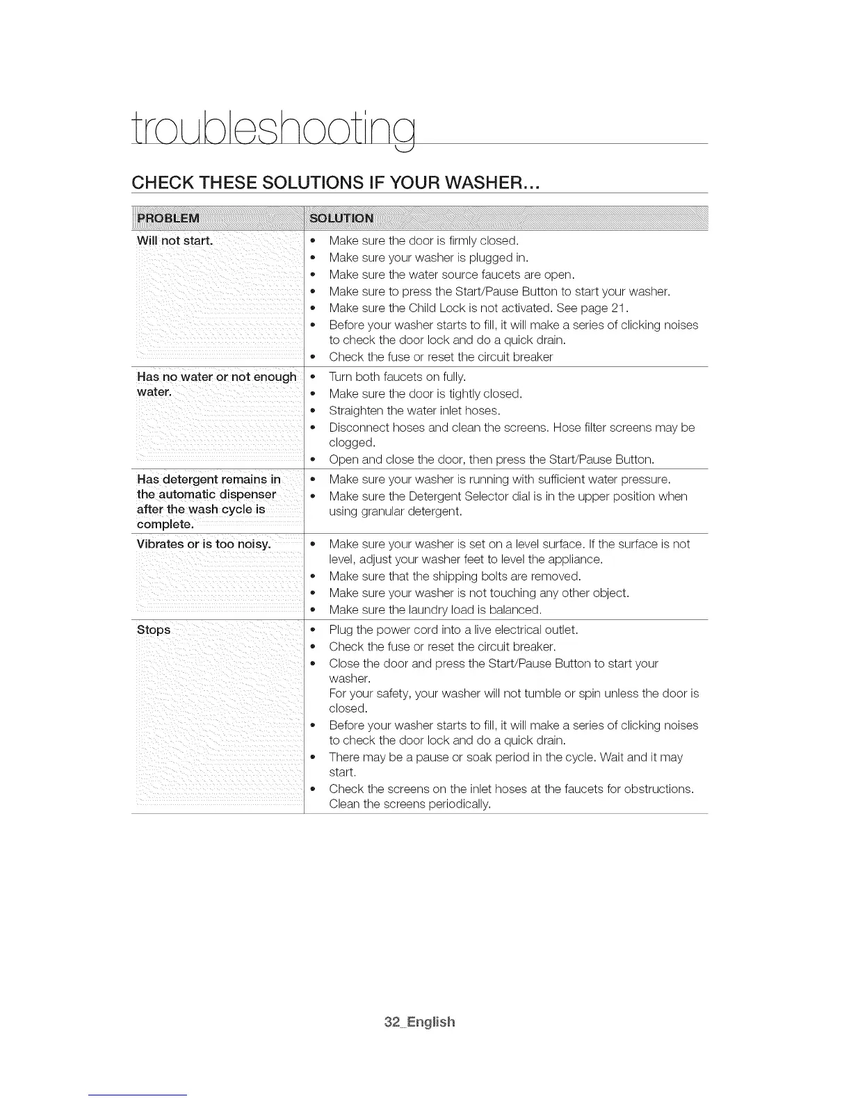 CHECK THESE SOLUTIONS IF YOUR WASHER...