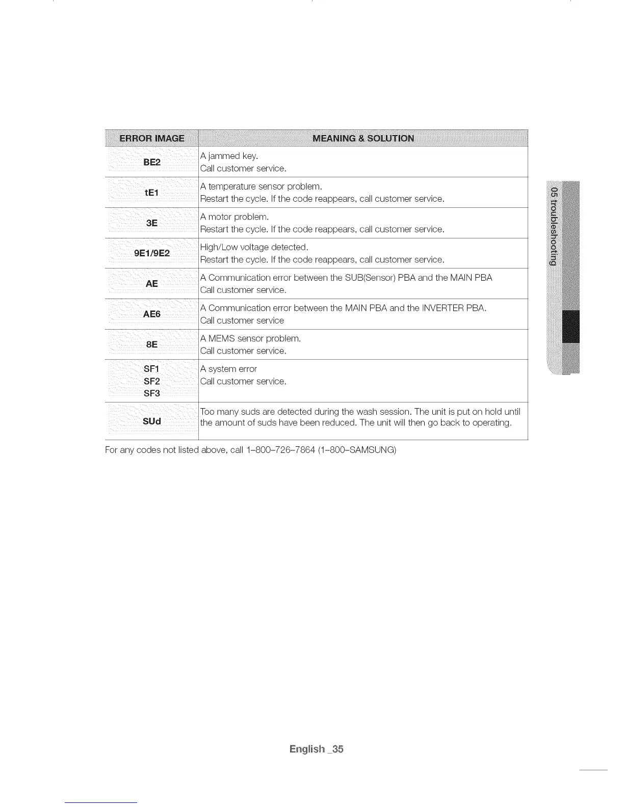 For any codes not listed above, call 1-800-726-7864 (1-800-SAMSUNG)