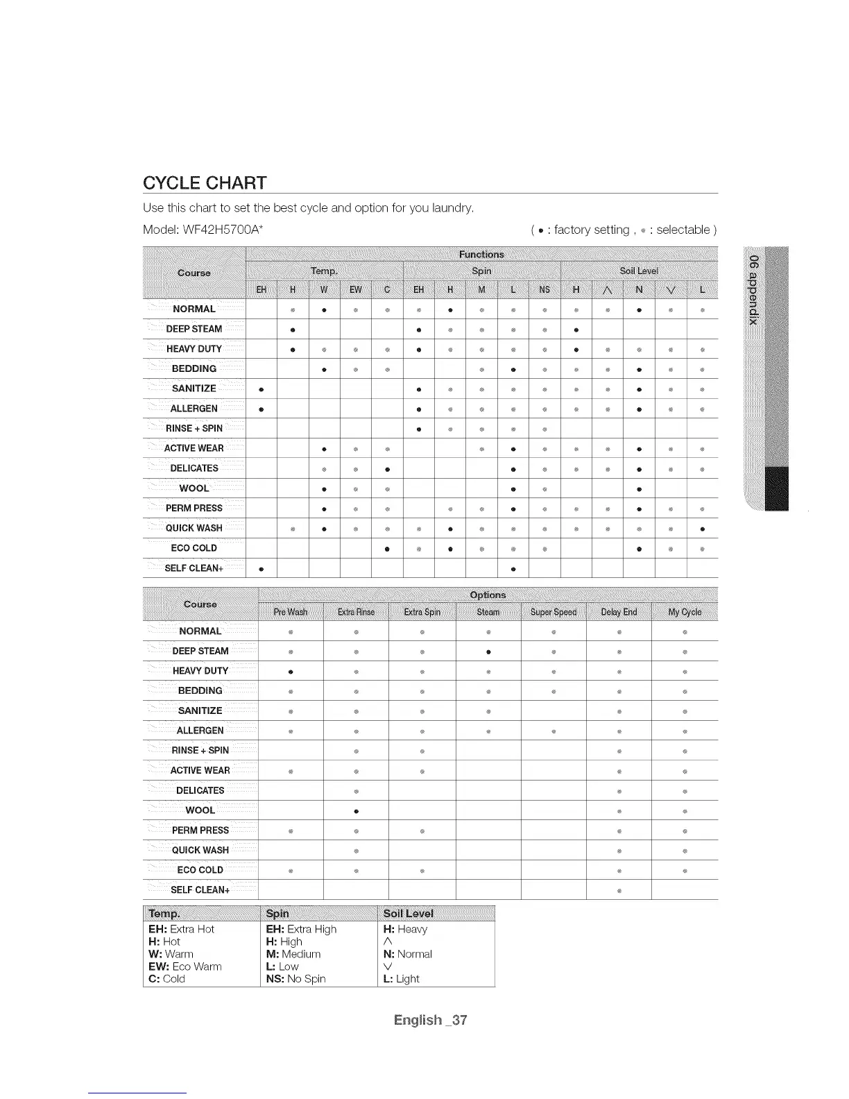 Use this chart to set the best cycle and option for you laundry.