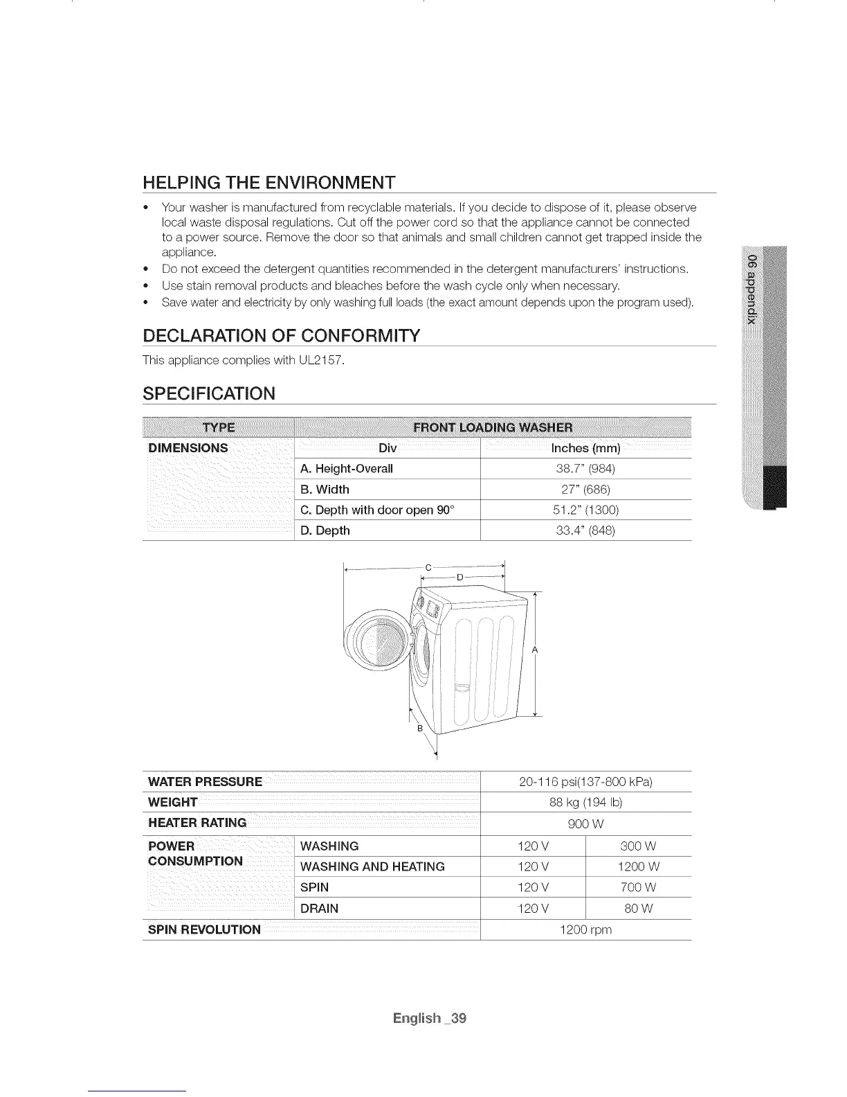 Your washer is manufactured from recyclable materials. If you decide to dispose of it, please observe