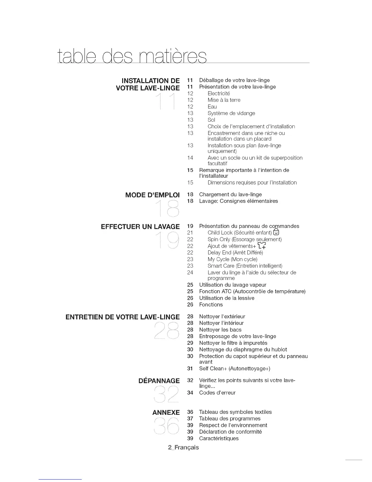 32 Verifiez les points suivants si votre lave-