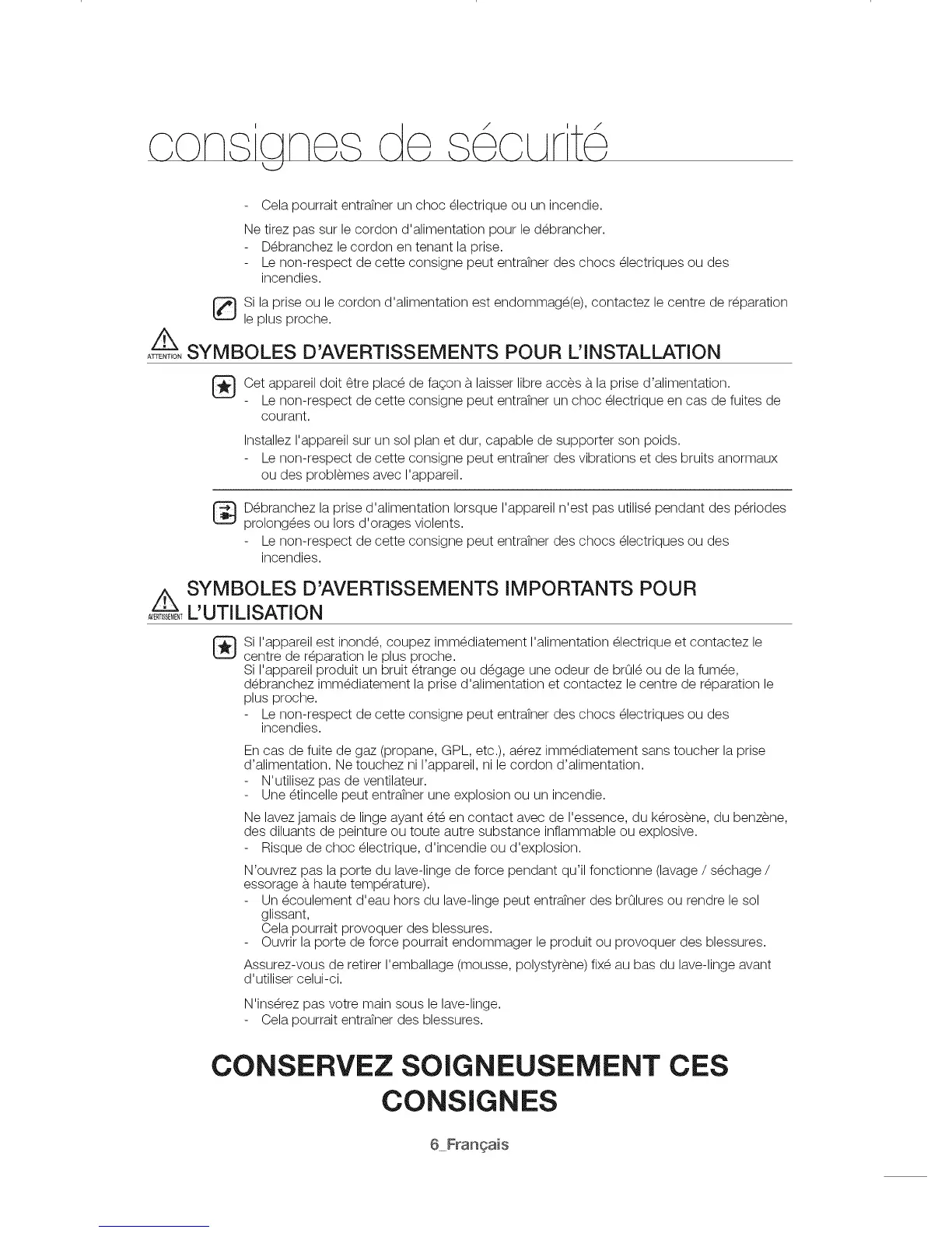 Ne lavez jamais de linge ayant _t_ en contact avec de I'essence, du k_rosene, du benz_ne,