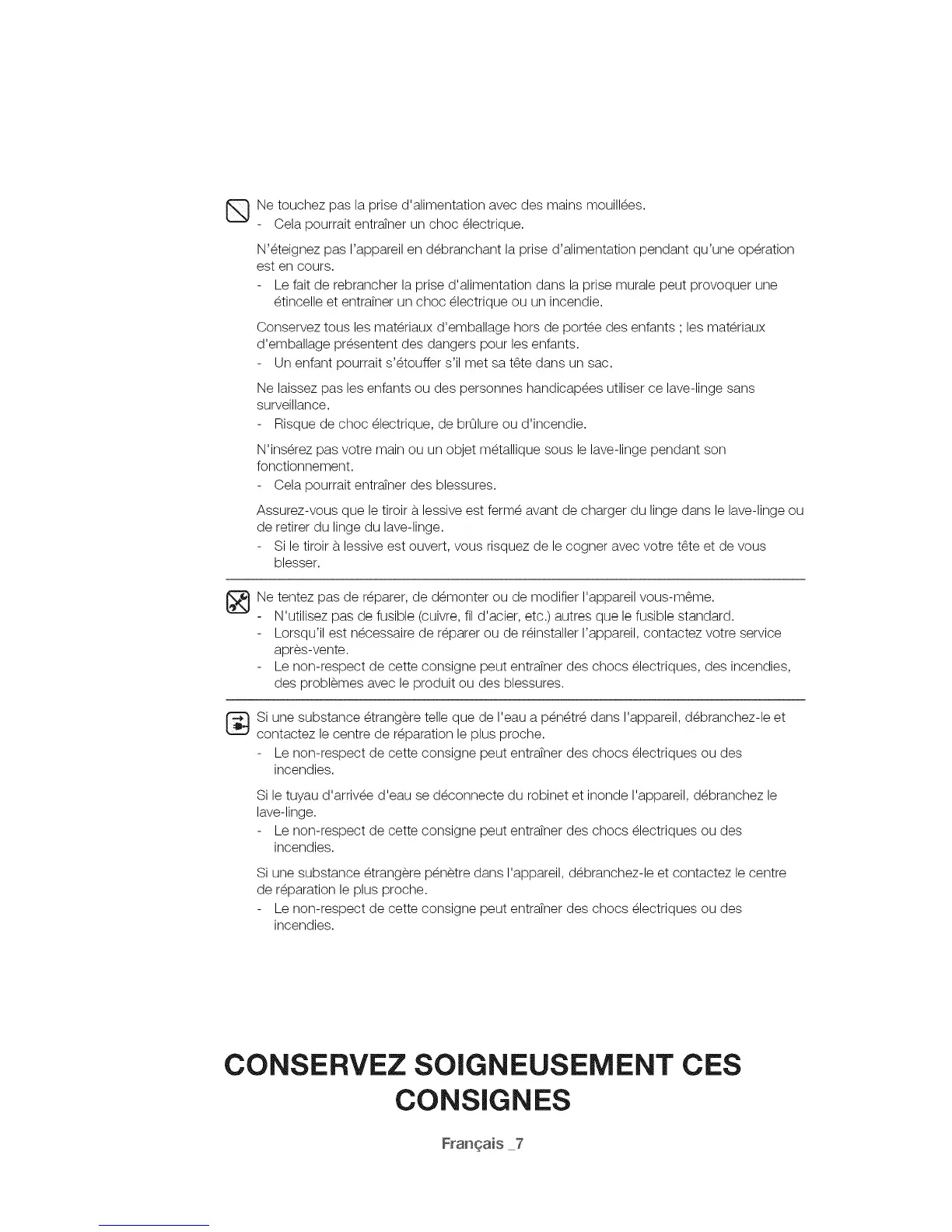 Le non-respect de cette consigne peut entraTner des chocs _lectriques, des incendies,