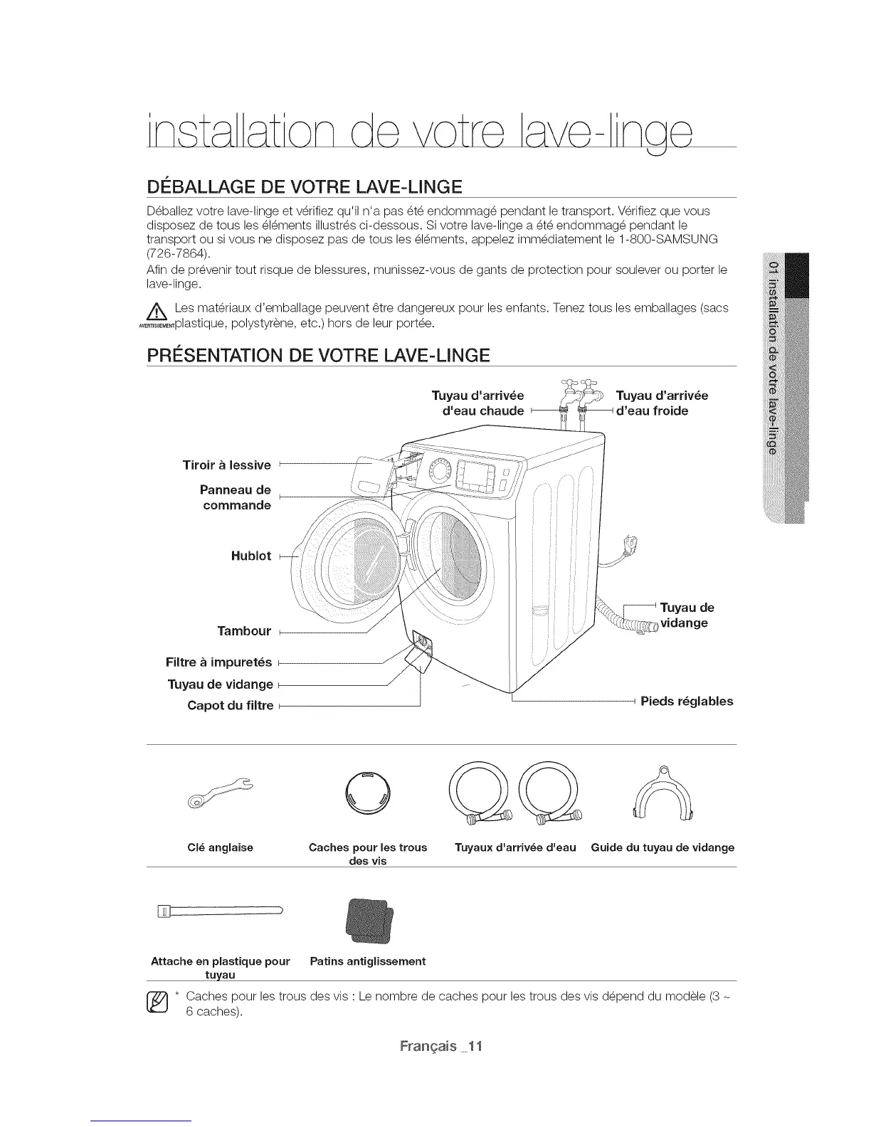 disposez de tousles _l_ments illustr_s ci-dessous. Si votre lave-linge a _t_ endommag_ pendant le