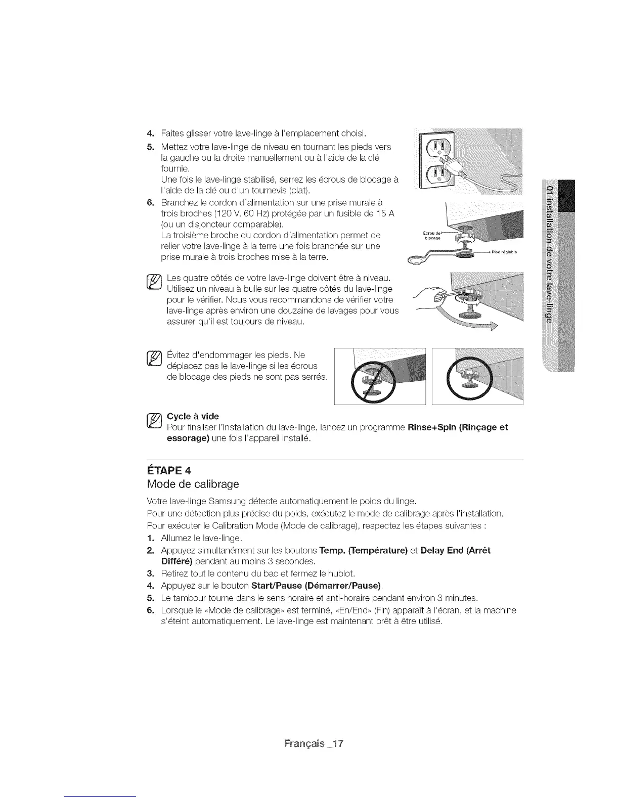 5. Mettez votre lave-linge de niveau en tournant les pieds vers