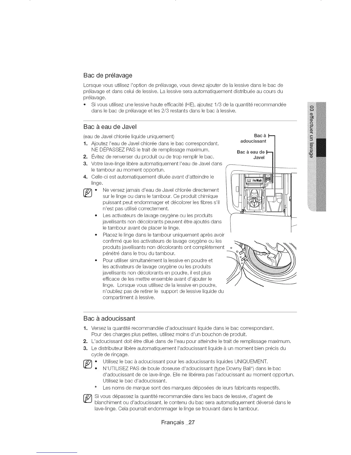 Lorsque vous utilisez I'option de pr_lavage, vous devez ajouter de la lessive dans le bac de