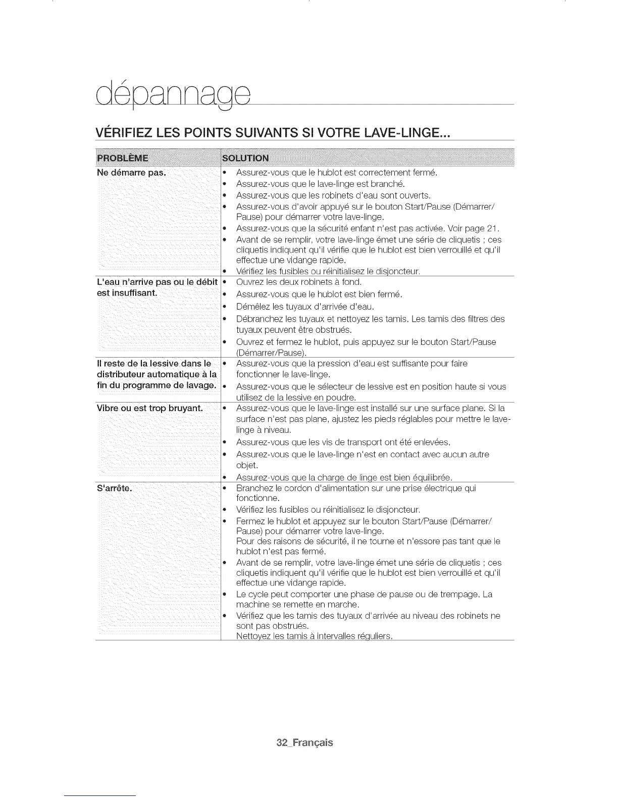YI RIFIEZ LES POINTS SUIYANTS Si VOTRE LAYE-LINGE...
