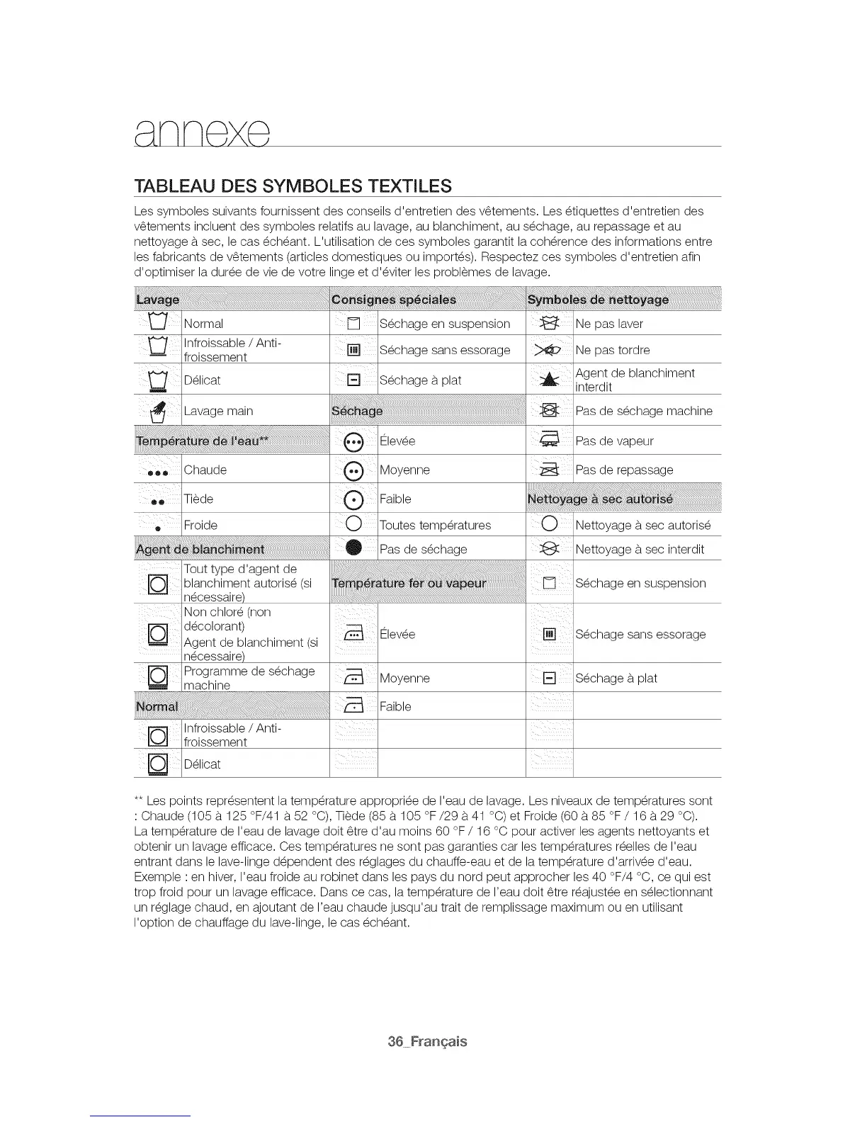 les fabricants de v_tements (articles domestiques ou import_s). Respectez ces symboles d'entretien afin