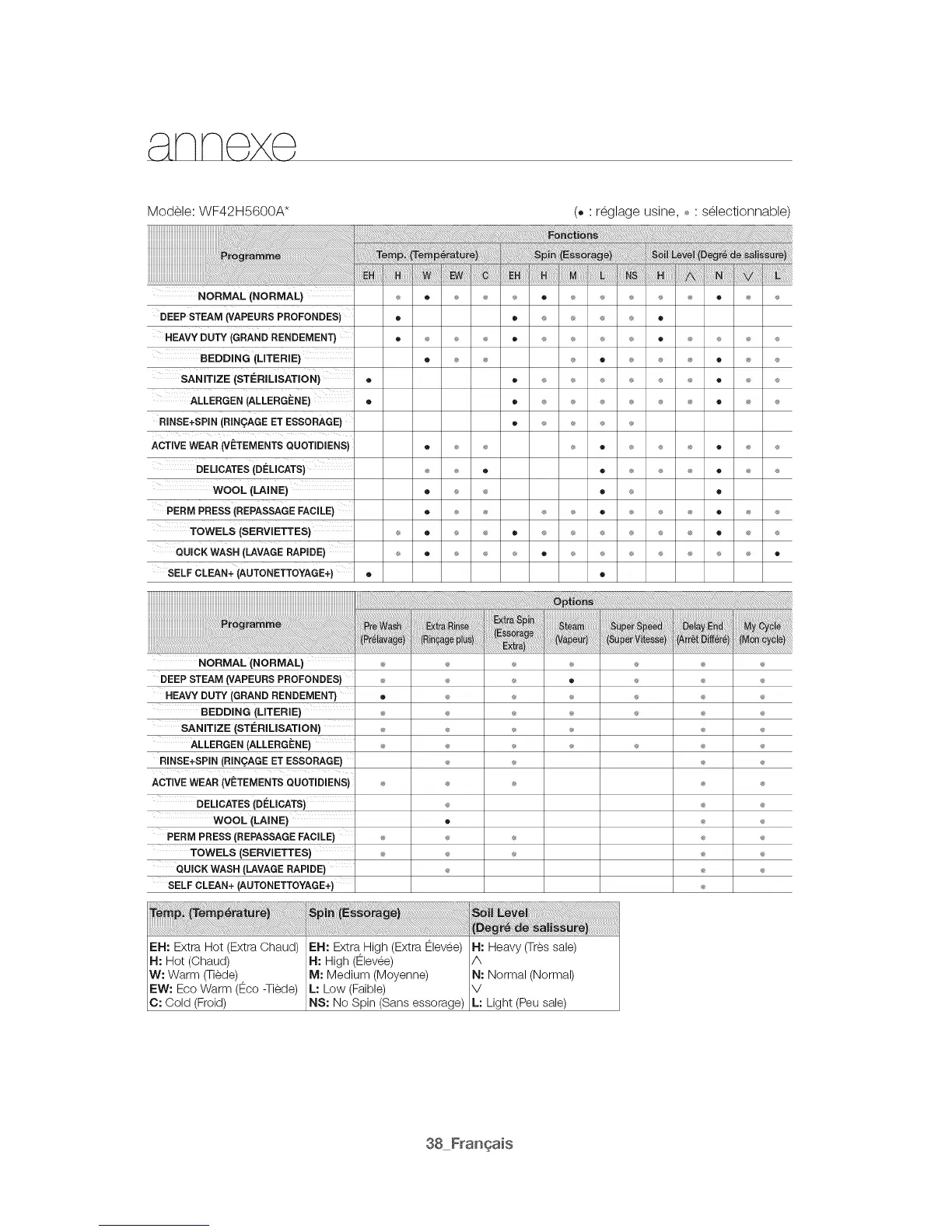 EH: Extra Hot (Extra Chaud) EH: Extra High (Extra Elevee) H: Heavy (Tres sale)