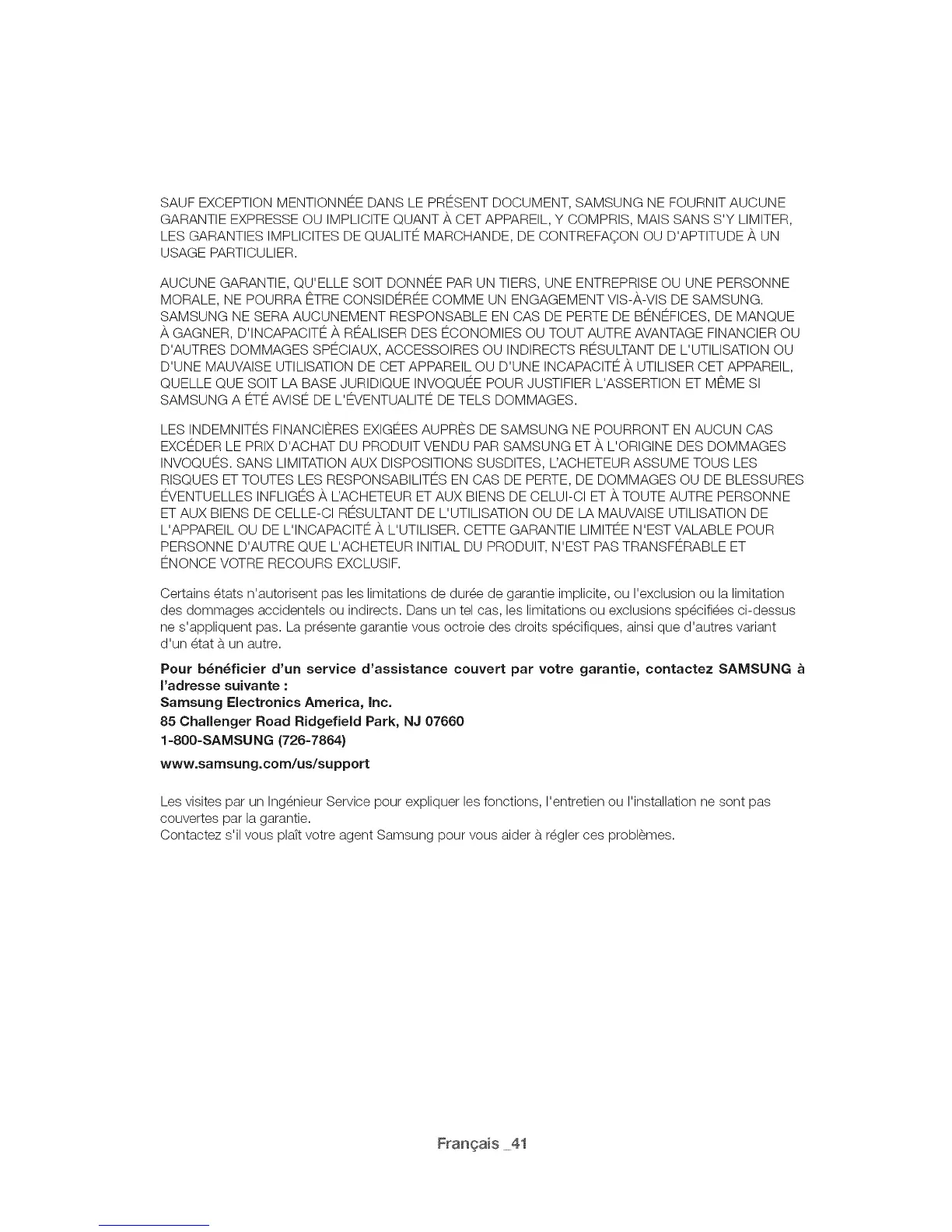 Pour b_n_ficier d'un service d'assistance couvert par votre garantie, contactez SAMSUNG