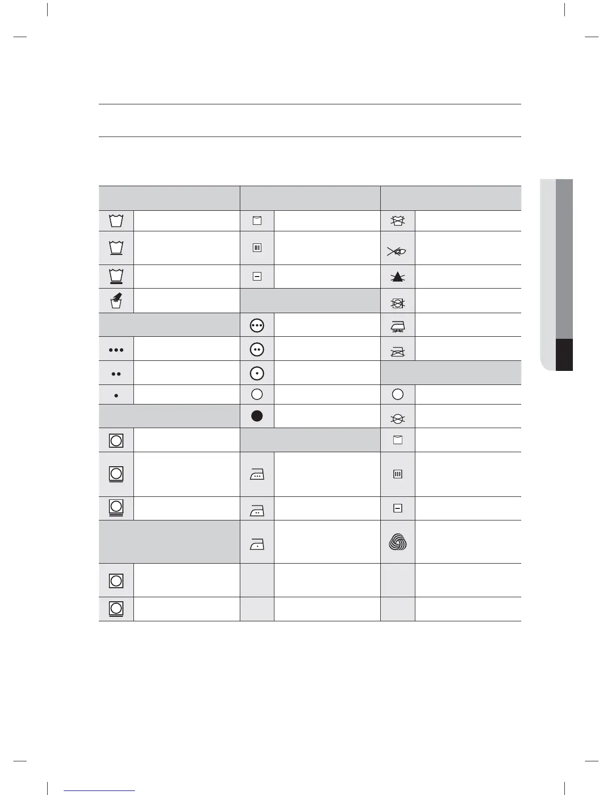 Los siguientes símbolos ofrecen indicaciones acerca de las prendas. La etiqueta de indicaciones de la prenda incluye símbolos