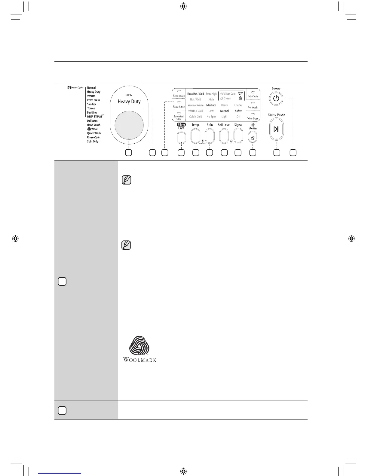 Wool (Lana): para lana que se pueda lavar en lavadora. Las cargas deben tener