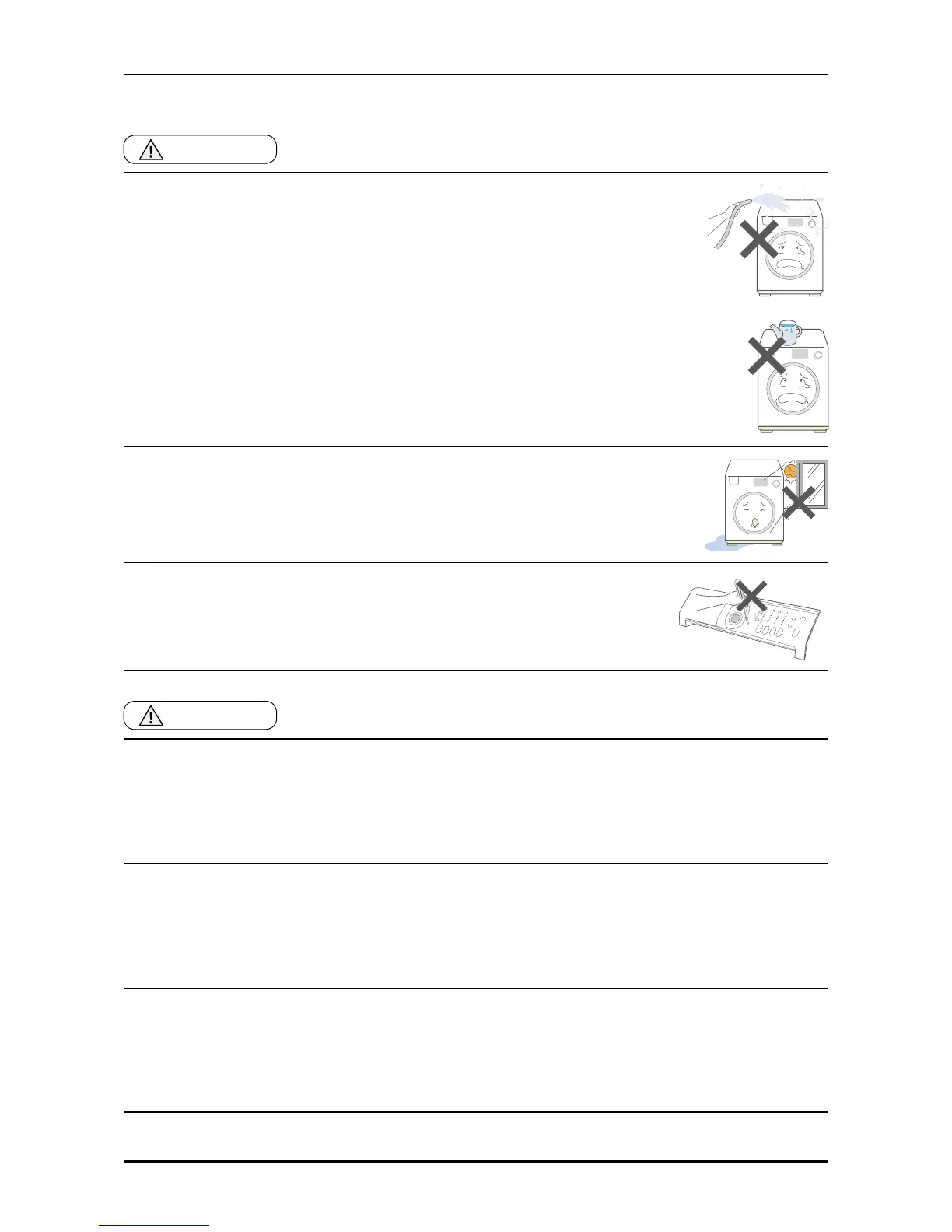 • Donotsprinklewaterontothewashingmachinedirectlywhencleaningit.