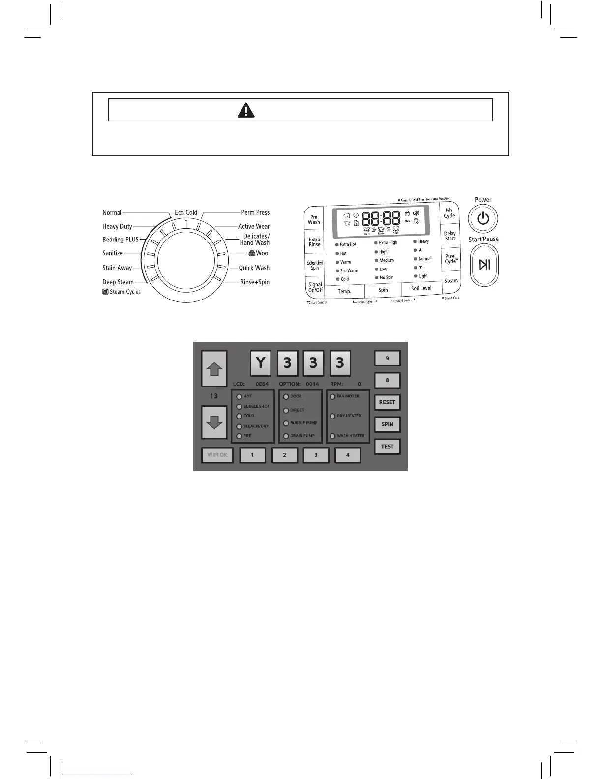 - Vérierlesdiérentsmodesdefonctionnement(ex.:vanned'eau,moteur,hublot,pompede