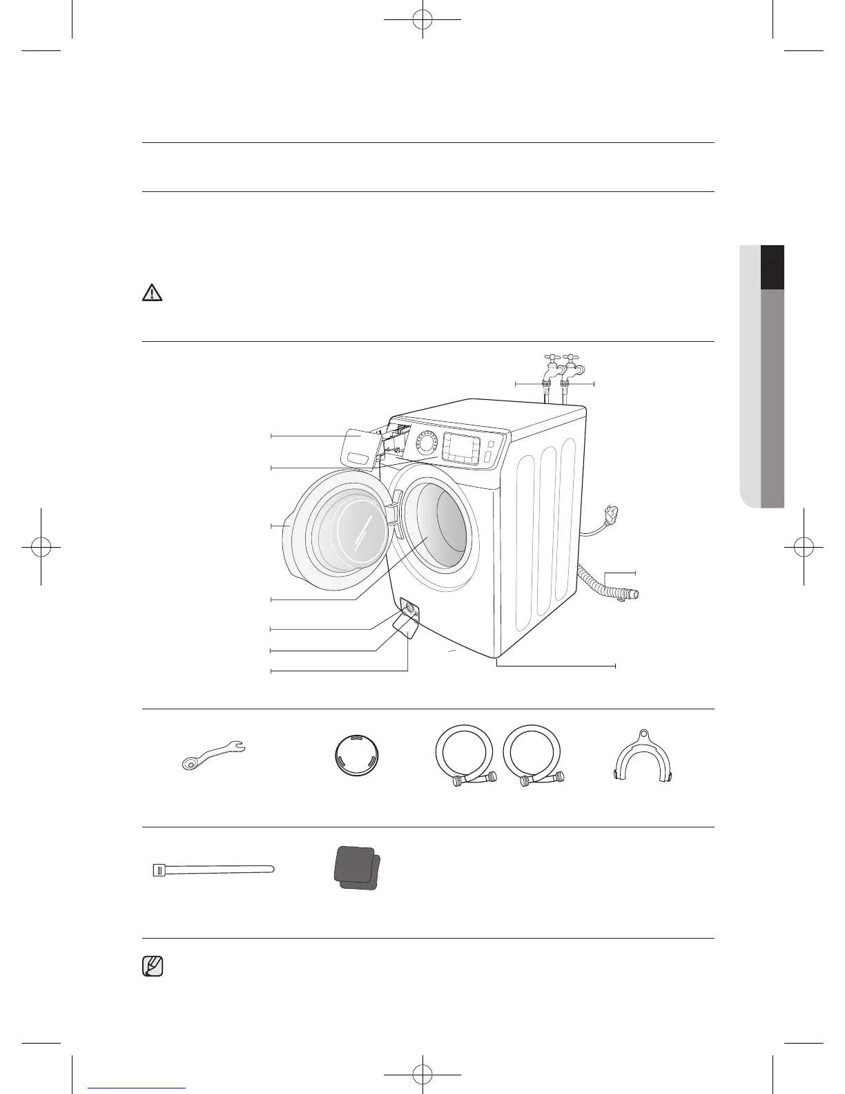 disposez de tous les éléments illustrés ci-dessous. Si votre lave-linge a été endommagé pendant le