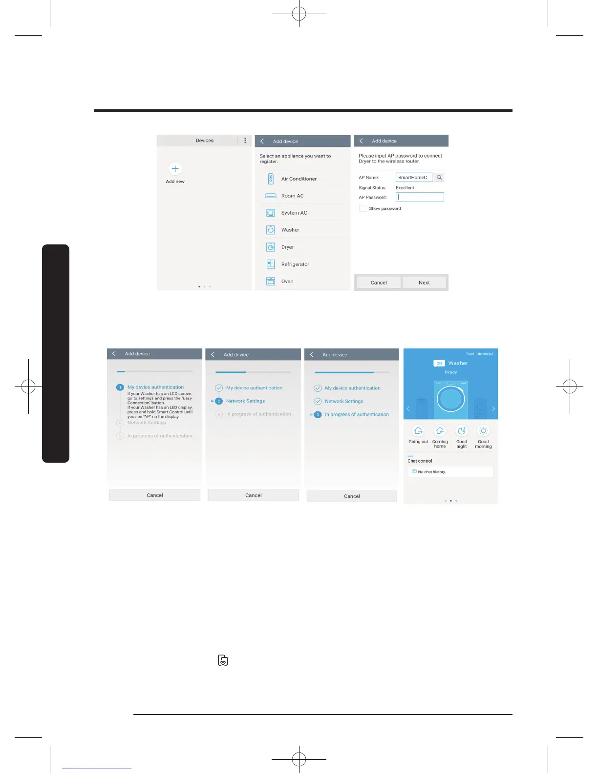 8. When the device registration is complete, the washing machine icon will appear in the