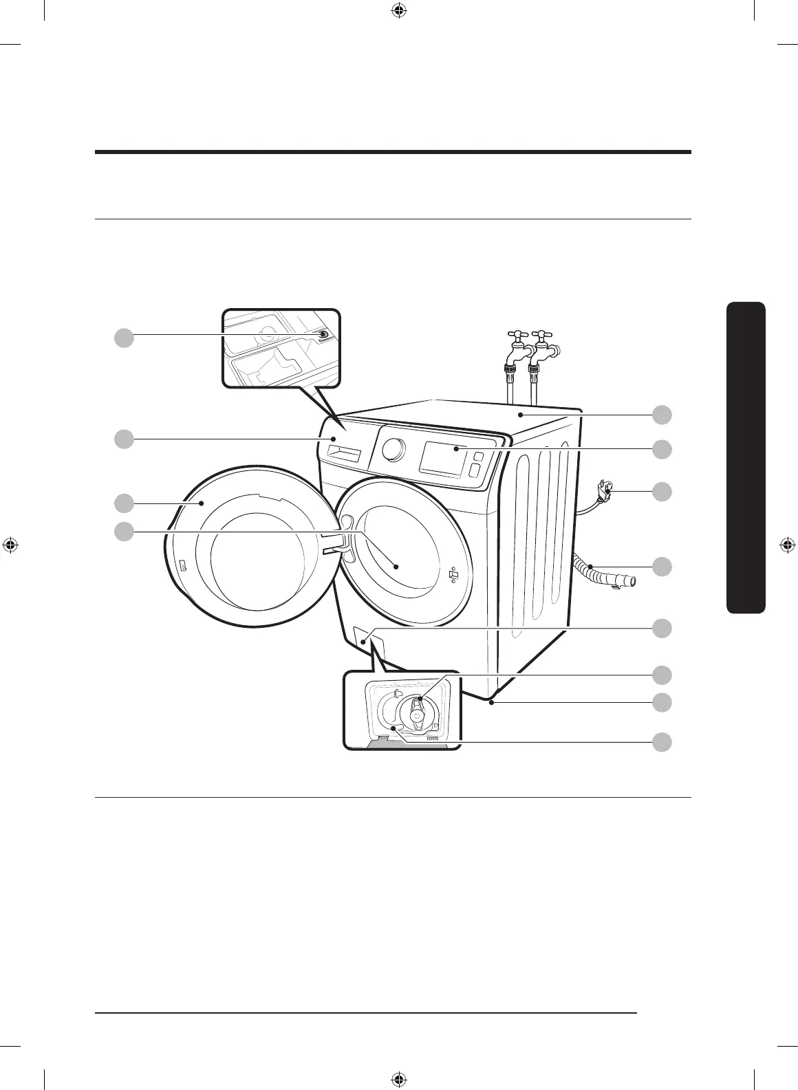 07 Tuyau de vidange d'urgence 08 Dessus du lave-linge 09 Panneau de commande