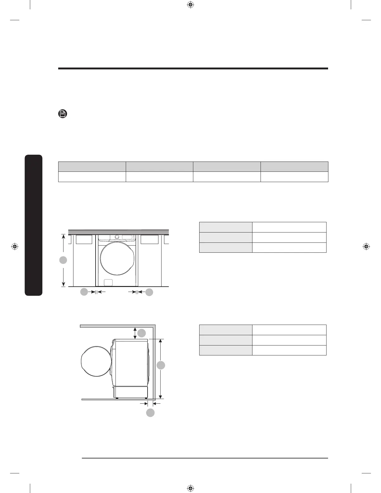 • Para el requisito de espacio libre para secadoras, consulte el manual del usuario de la secadora.