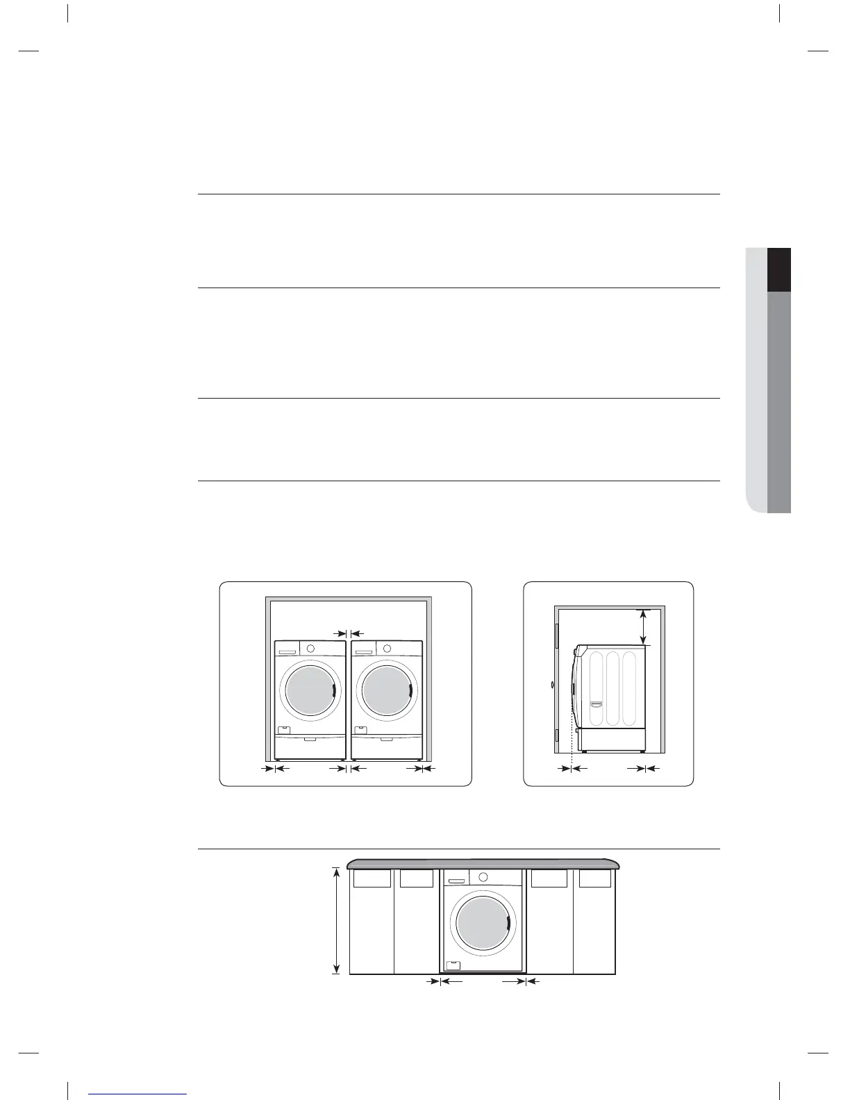 Si le lave-linge et le sèche-linge sont installés ensemble, prévoyez un dégagement d'au moins 72 po²