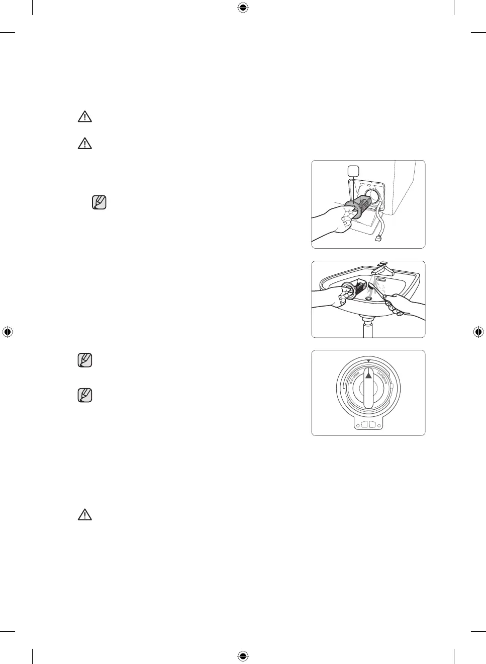 UZMANĪBU: Nemēģiniet izjaukt netīrumu filtru veļas mašīnas darbības laikā, jo pa to var izplūst karsts ūdens.