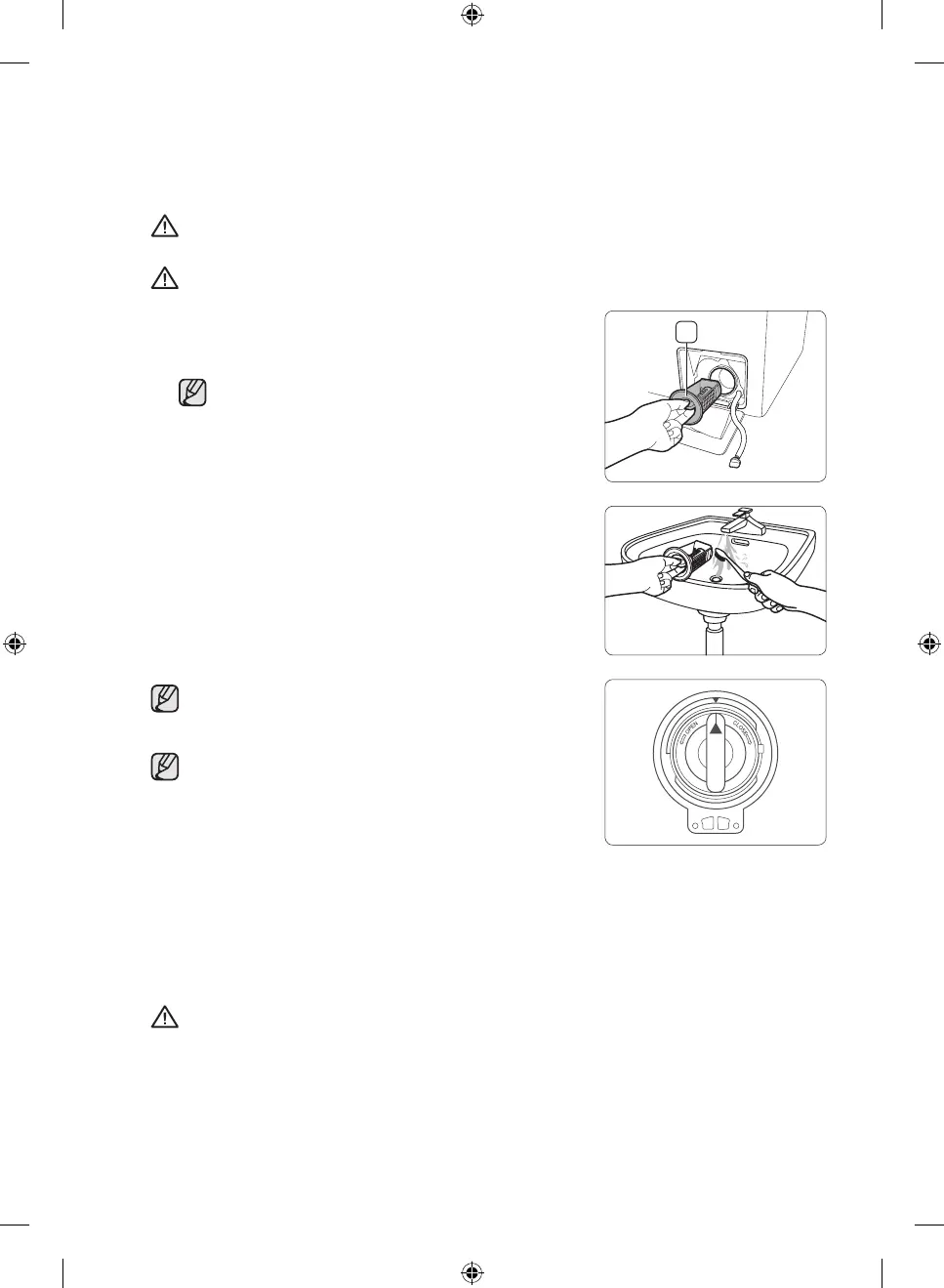 CAUTION: Do not disassemble the debris filter while the machine is running as hot water may flow out.