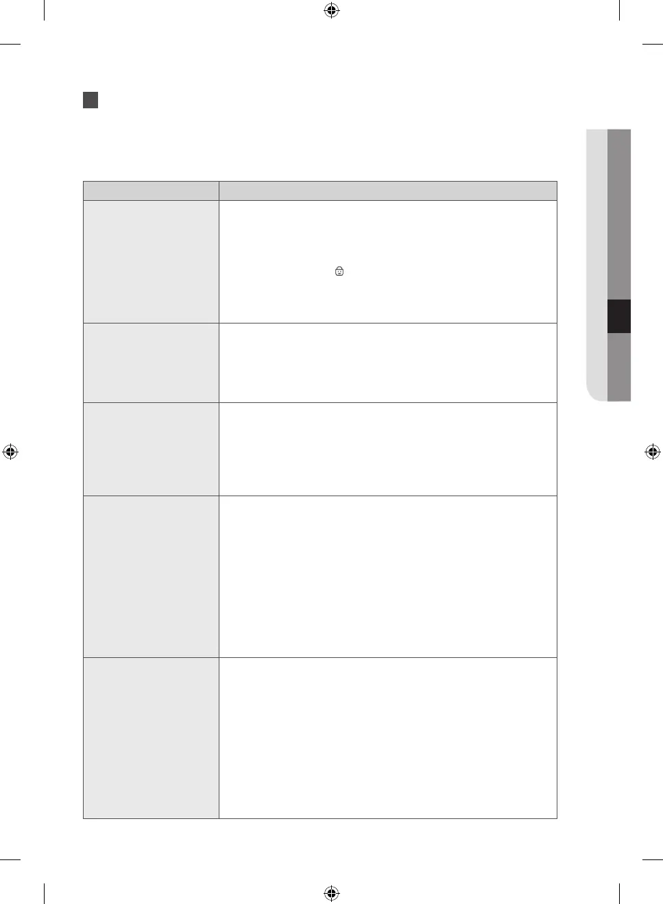 If you encounter a problem with the washing machine, first check the table below and try the suggestions.