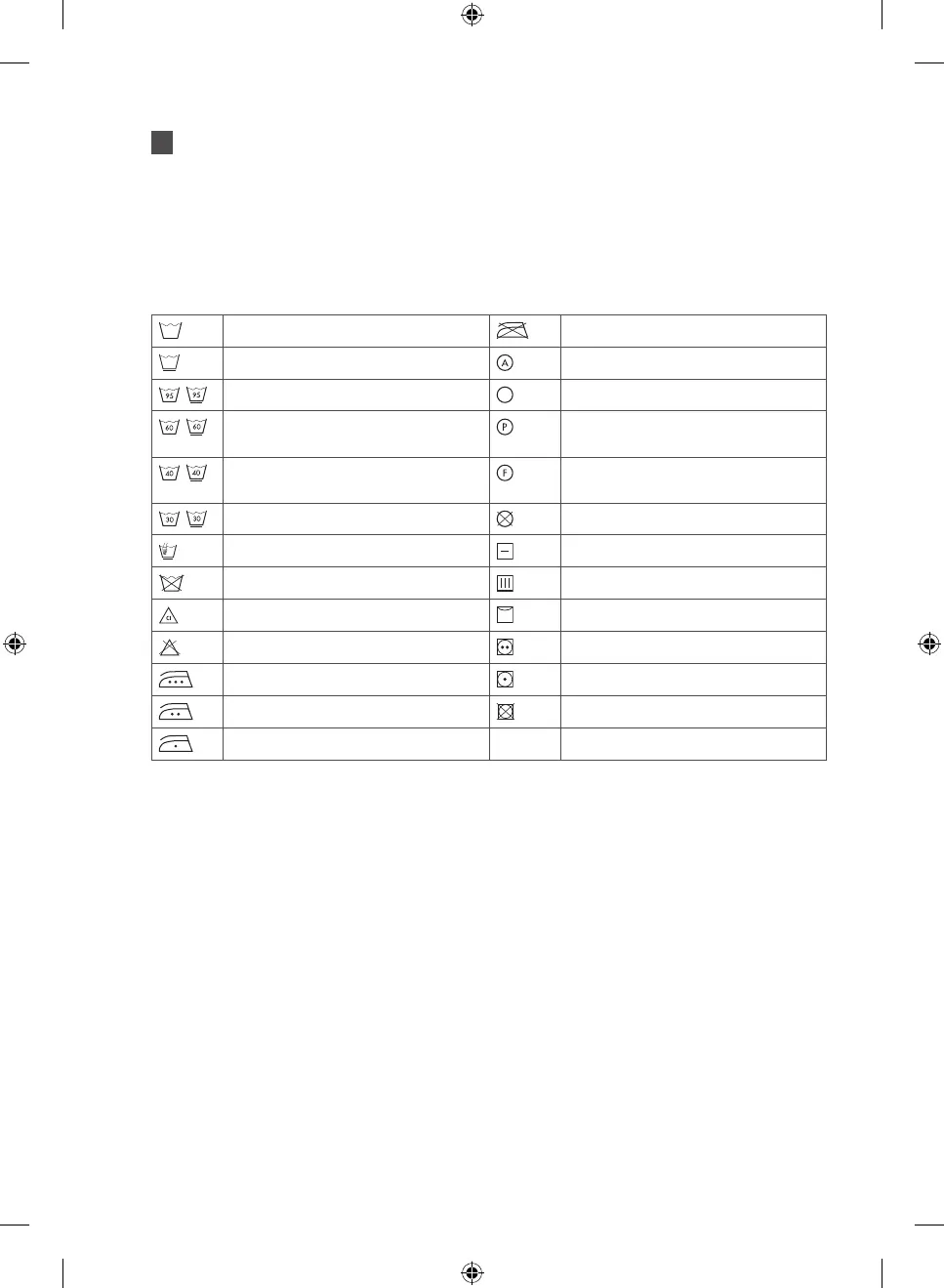 washing, bleaching, drying and ironing (and dry cleaning when necessary). The use of symbols ensures