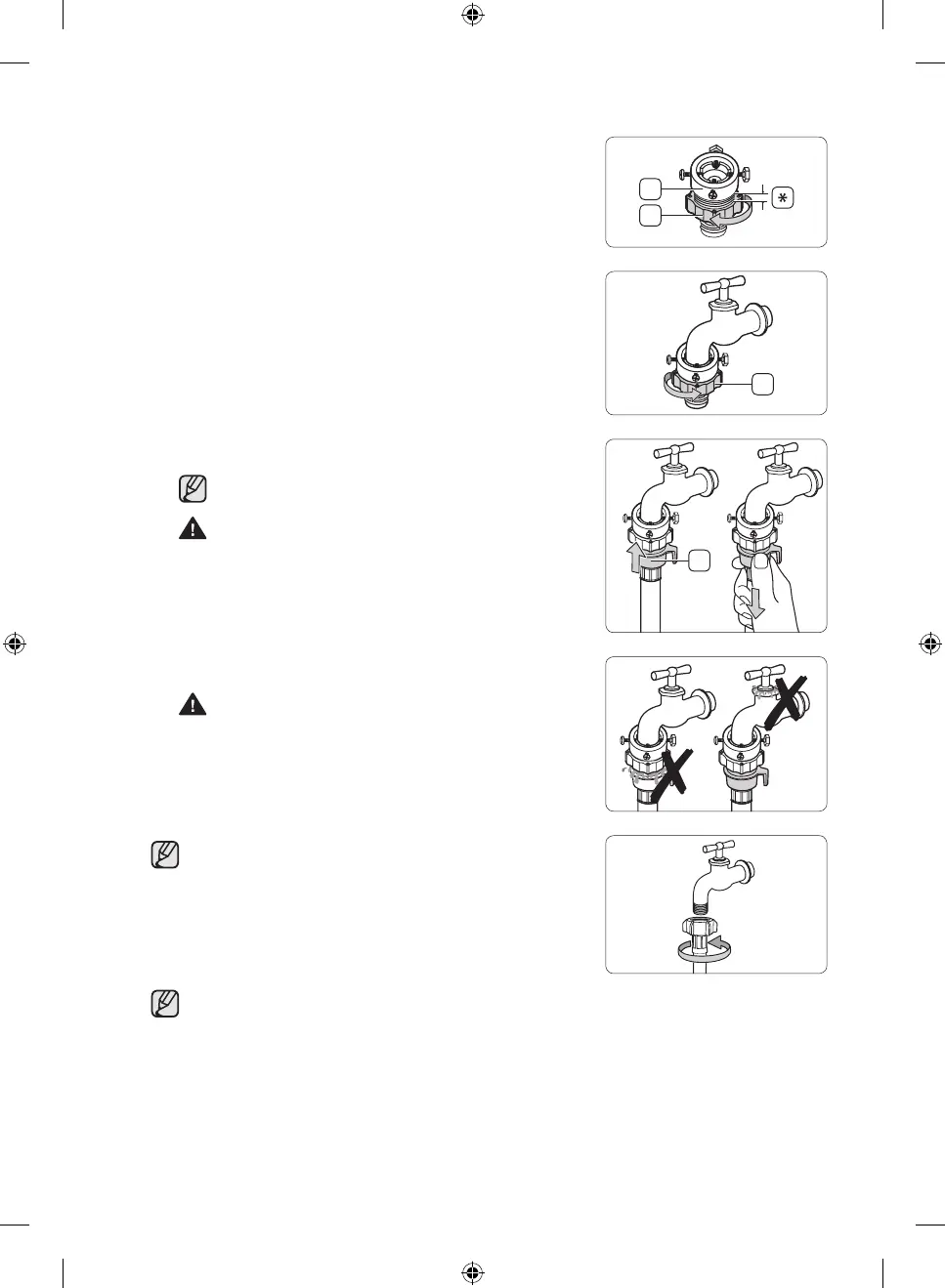 6. Keerake veekraan lahti ja jälgige, et vee sissevõtuava, kraani või adapteri juures