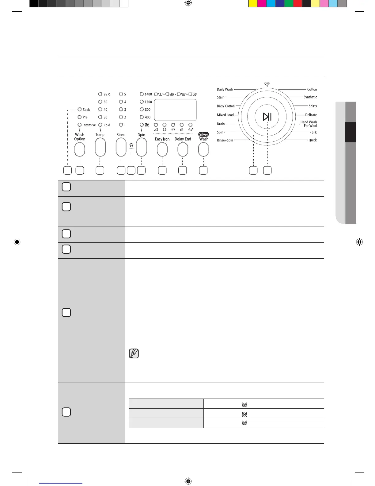 температура (ладна вода, 30 °C, 40 °C, 60 °C и 95 °C).