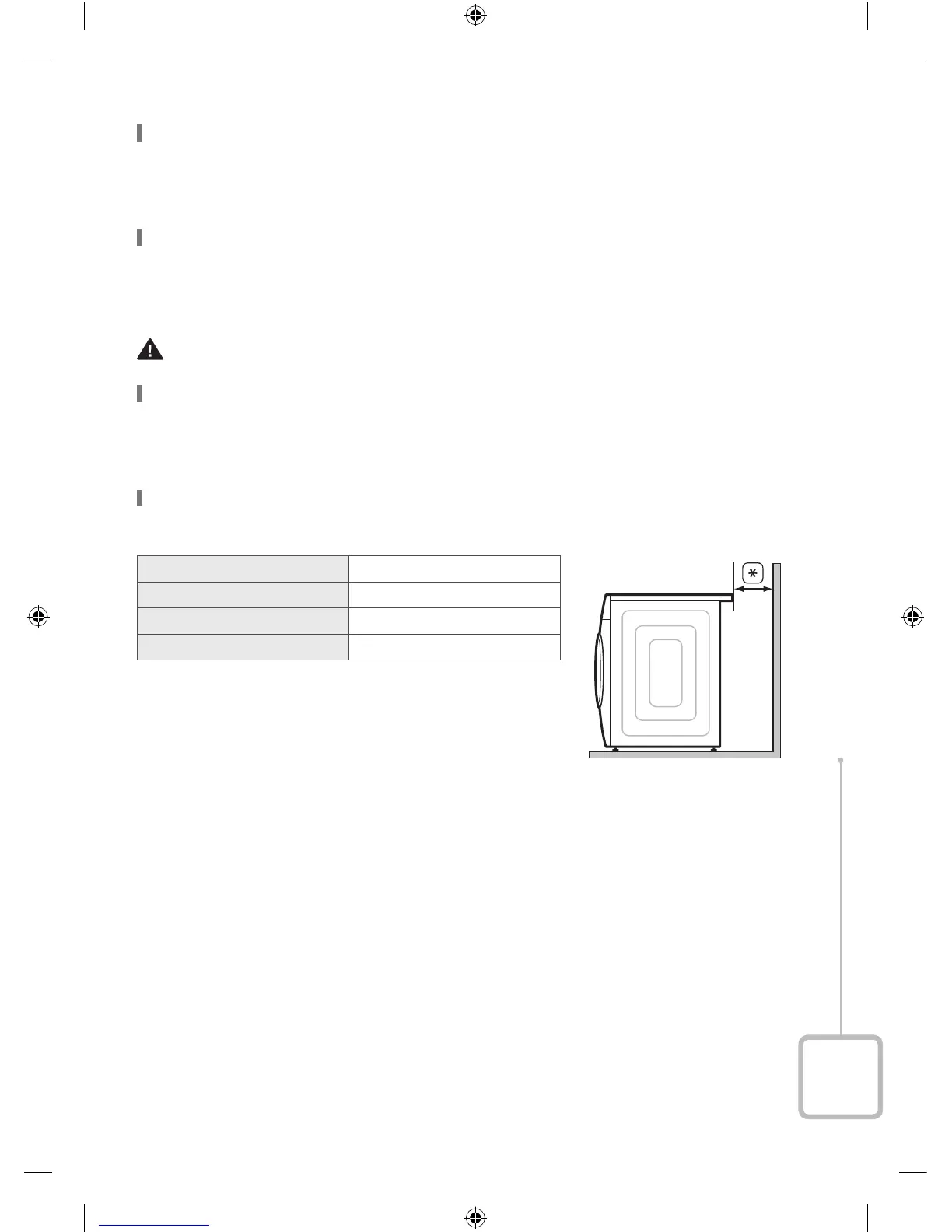 an unobstructed air opening of at least 500 mm. Your washing machine by itself does not require a specific