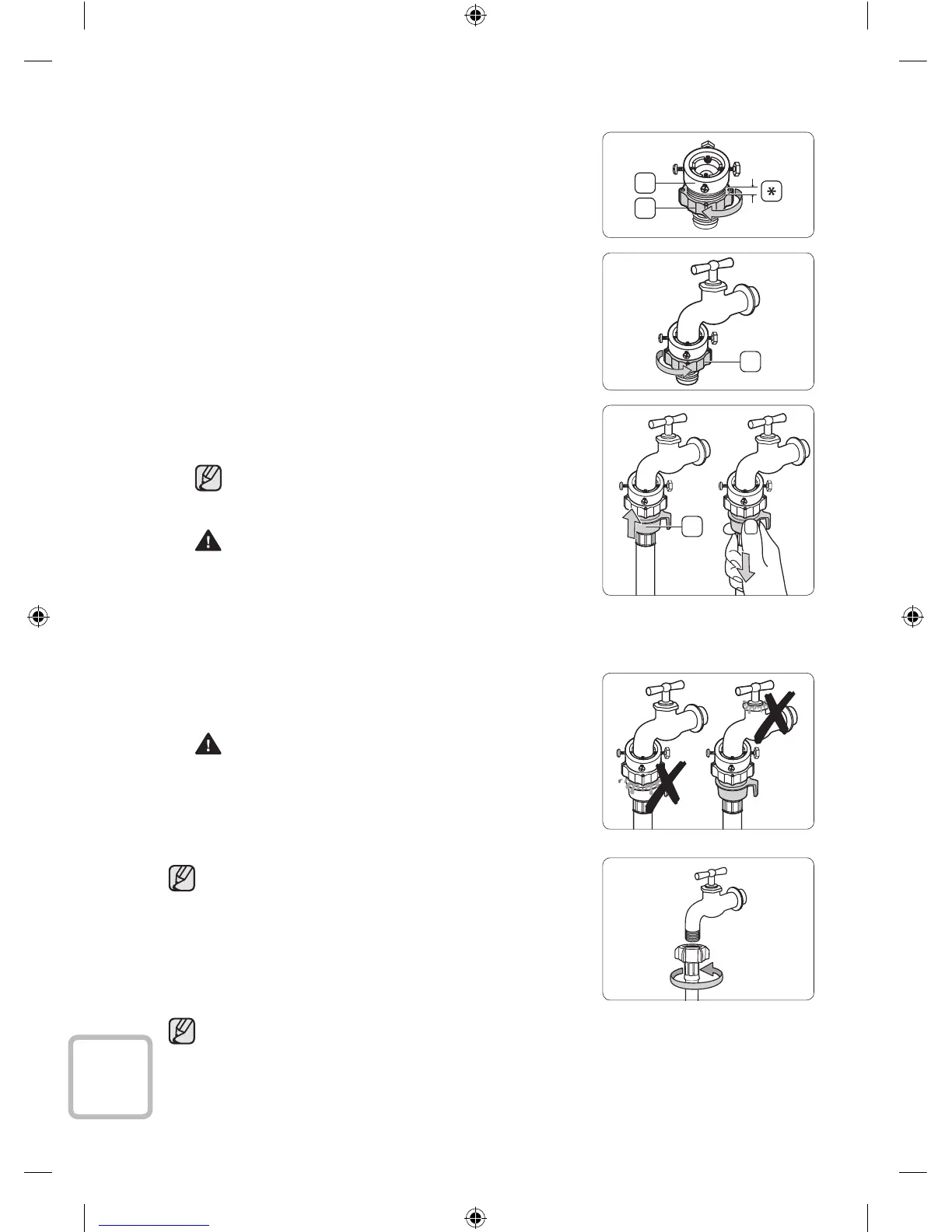 from the water valve, tap, or adaptor. If there is a water leak, repeat
