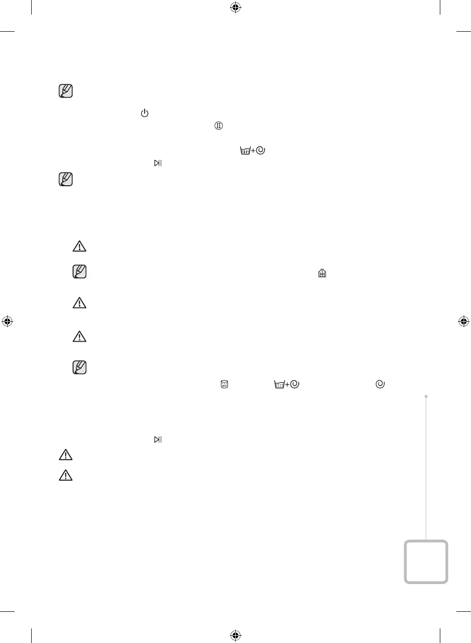 VAR FÖRSIKTIG! Öppna inte tvättmedelsfacket eller smutsfiltret när tvättmaskinen går, eftersom du då kan exponeras