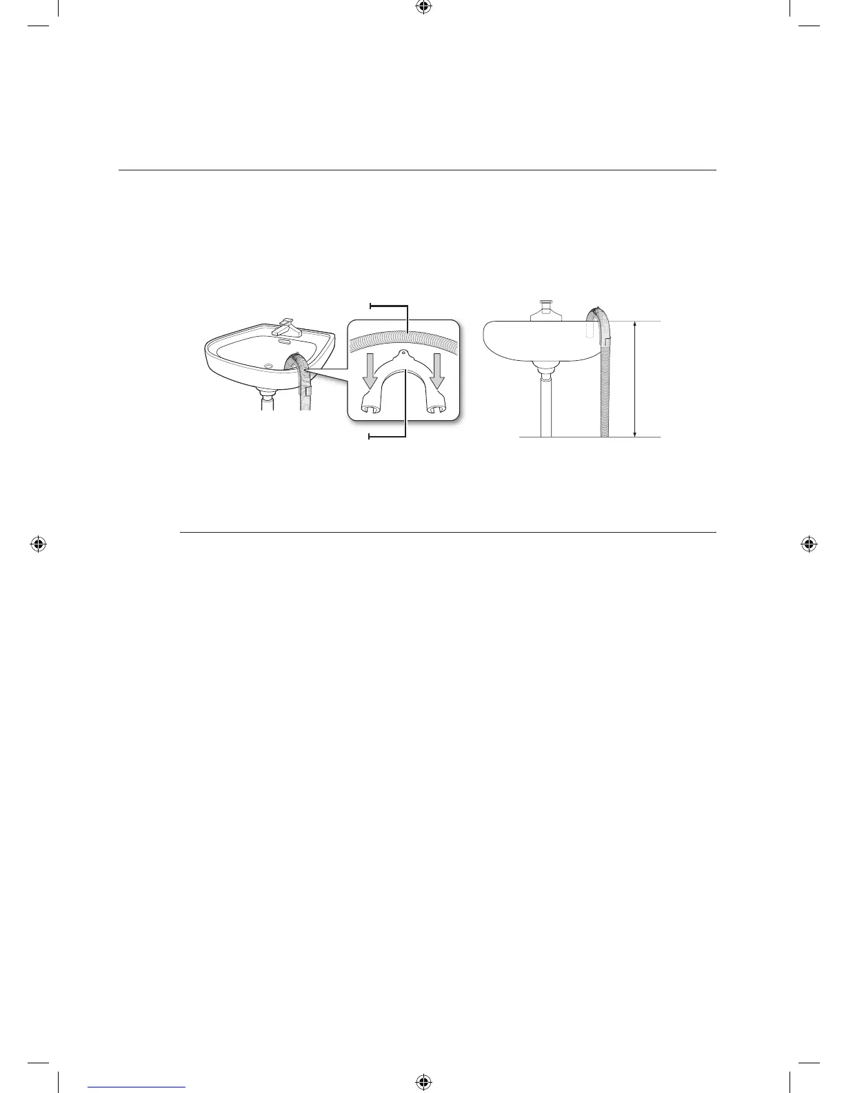 1. Over the edge of a wash basin: The drain hose must be placed at a height of between 60