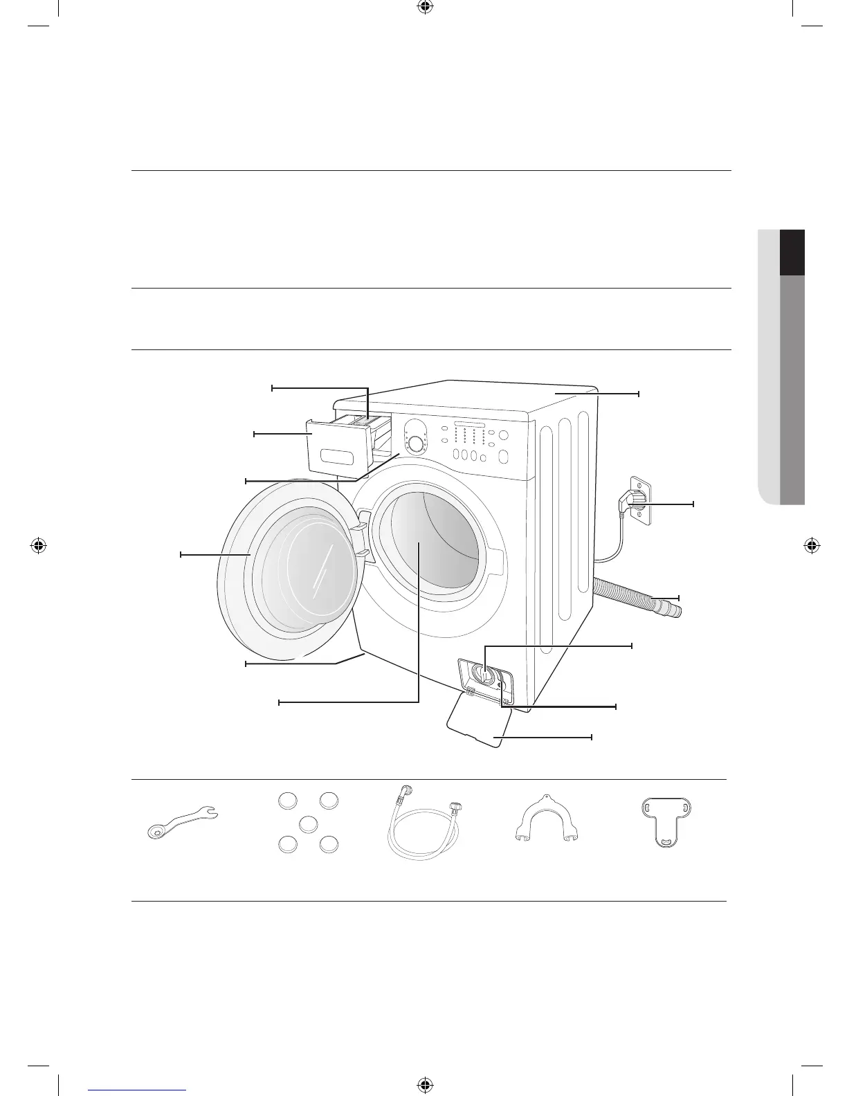 Carefully unpack your washing machine, and make sure you’ve received all of the parts shown below.
