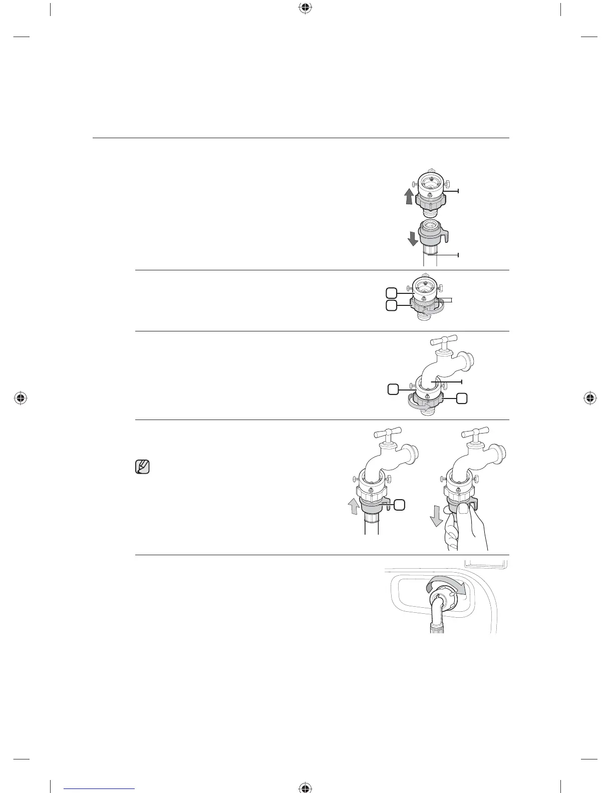 4. Connect the water supply hose to the adaptor.