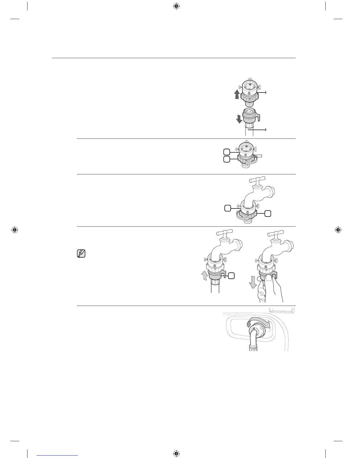 4. Koble vannslangen til adapteren. Når du