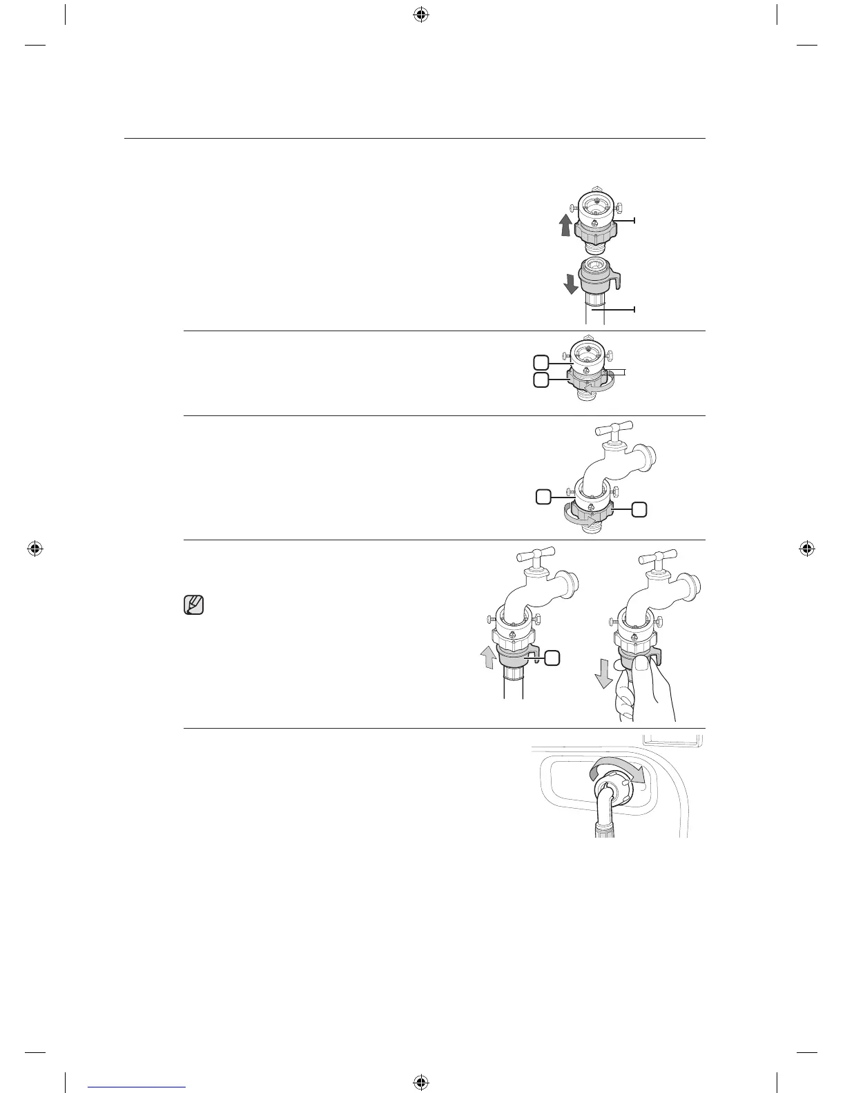 4. Anslut vattenslangen till adaptern. När du lossar