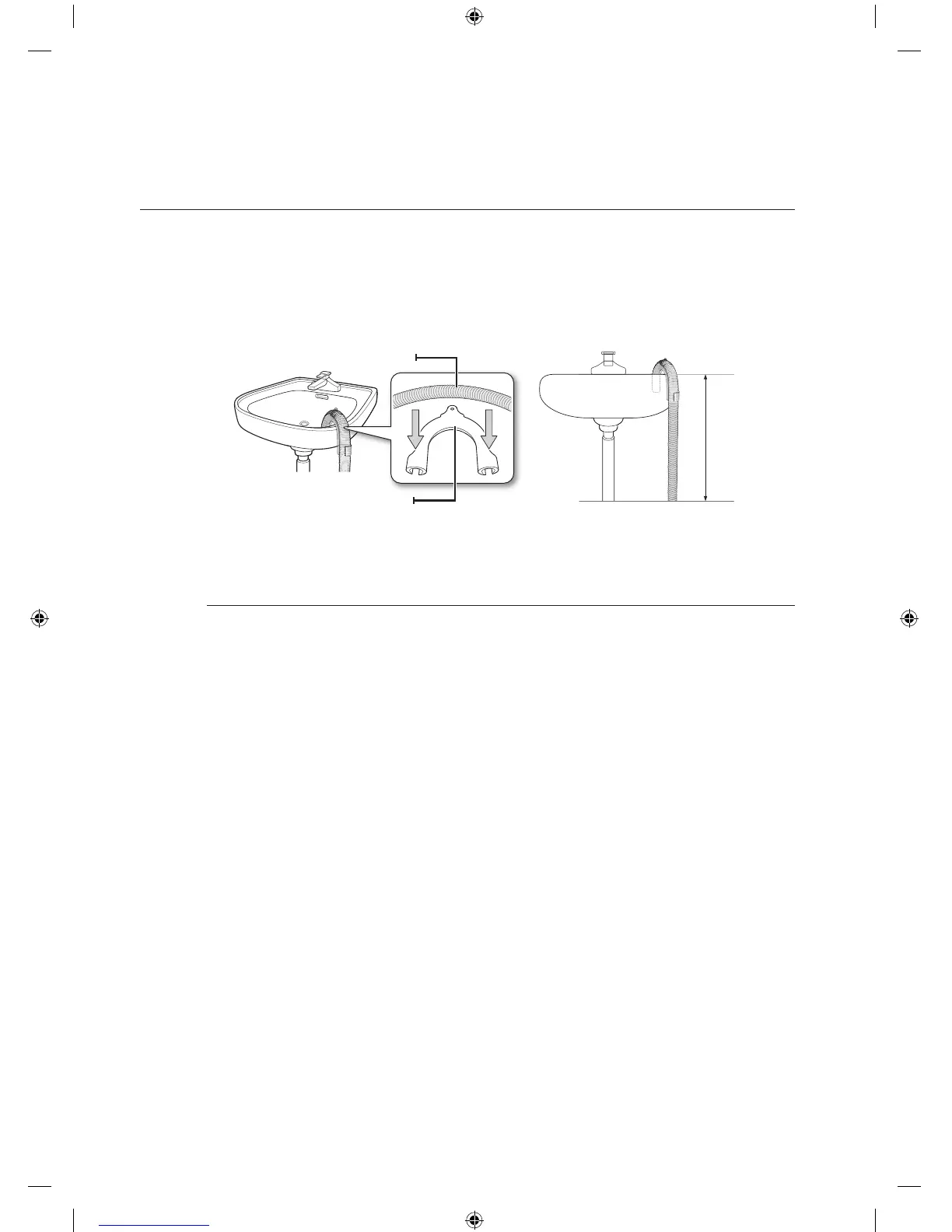 1. Over the edge of a wash basin: The drain hose must be placed at a height of between 60