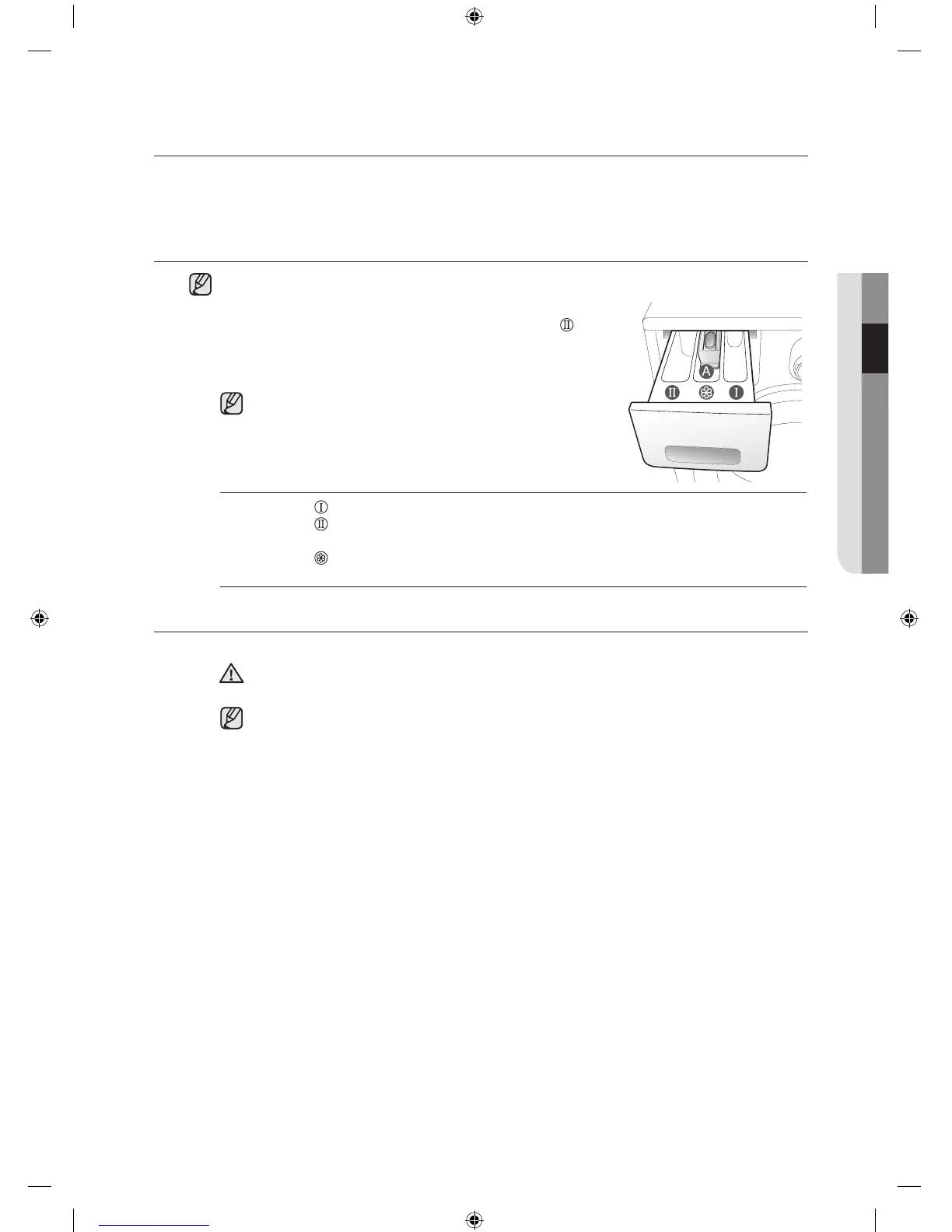 Compartment : Detergent for the main wash, water softener, pre-soaking agent, bleach and