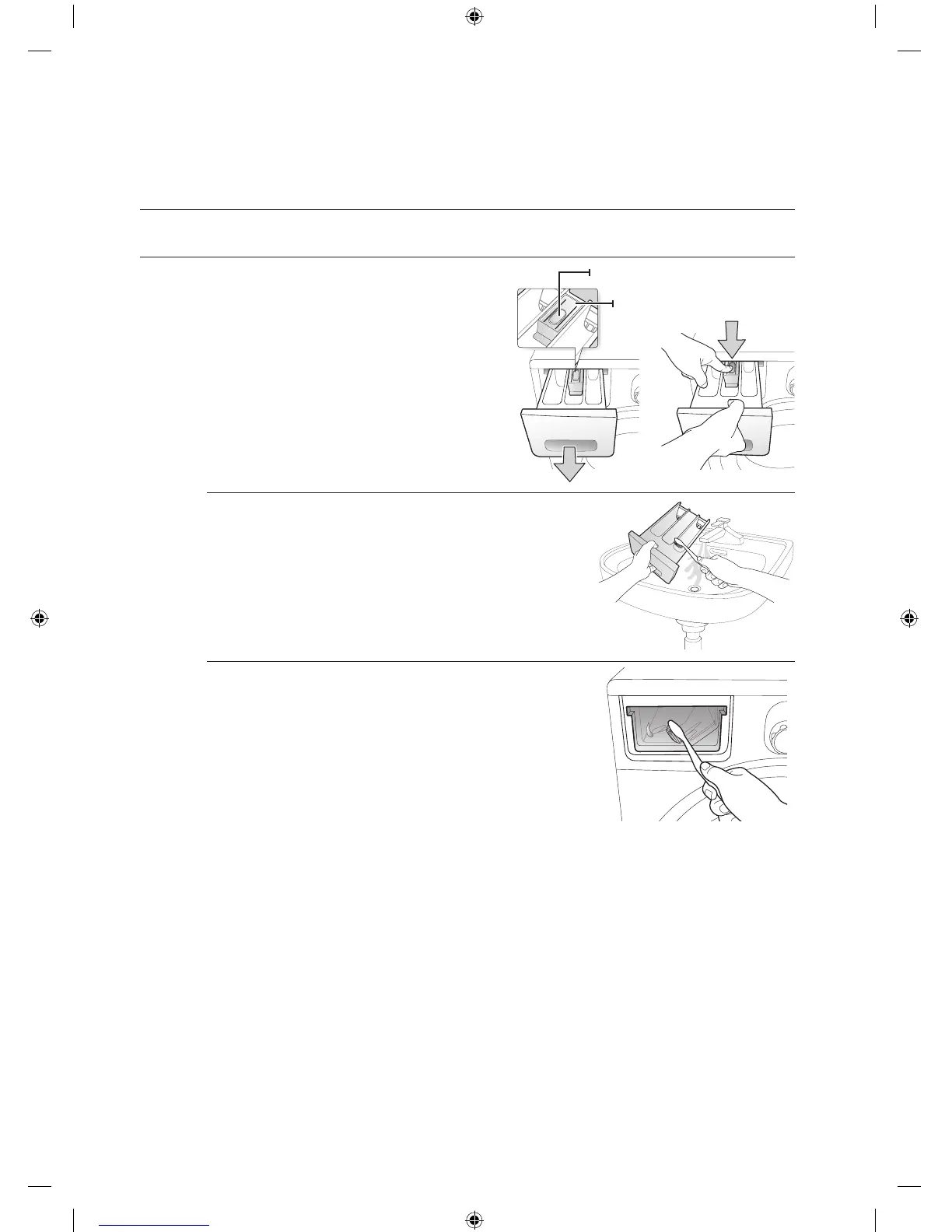1. Paina pesuainelokeron sisällä sijaitsevaa