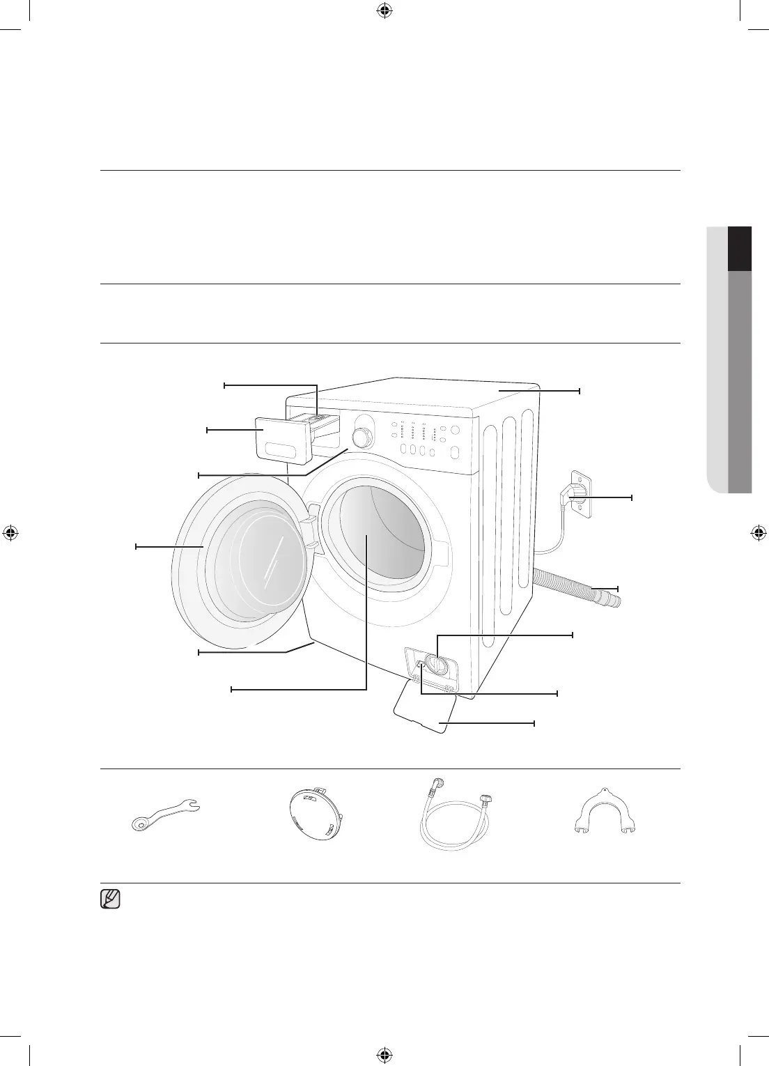 Carefully unpack your washing machine, and make sure you’ve received all of the parts shown below.