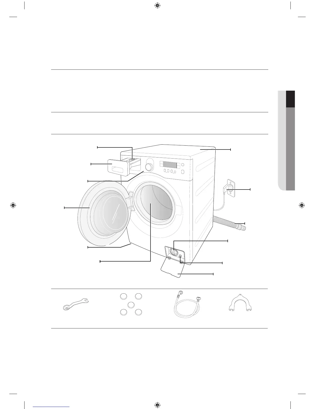 Carefully unpack your washing machine, and make sure you’ve received all of the parts shown below.