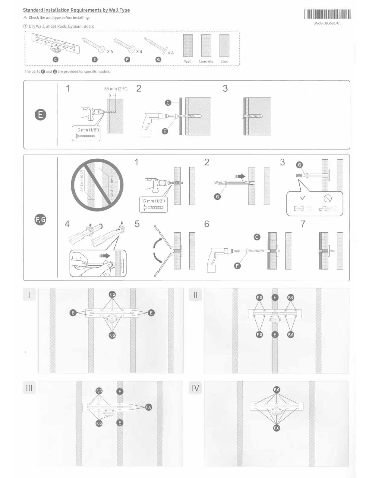 Samsung WMN-M12E - Standard Installation Requirements by Wall Type