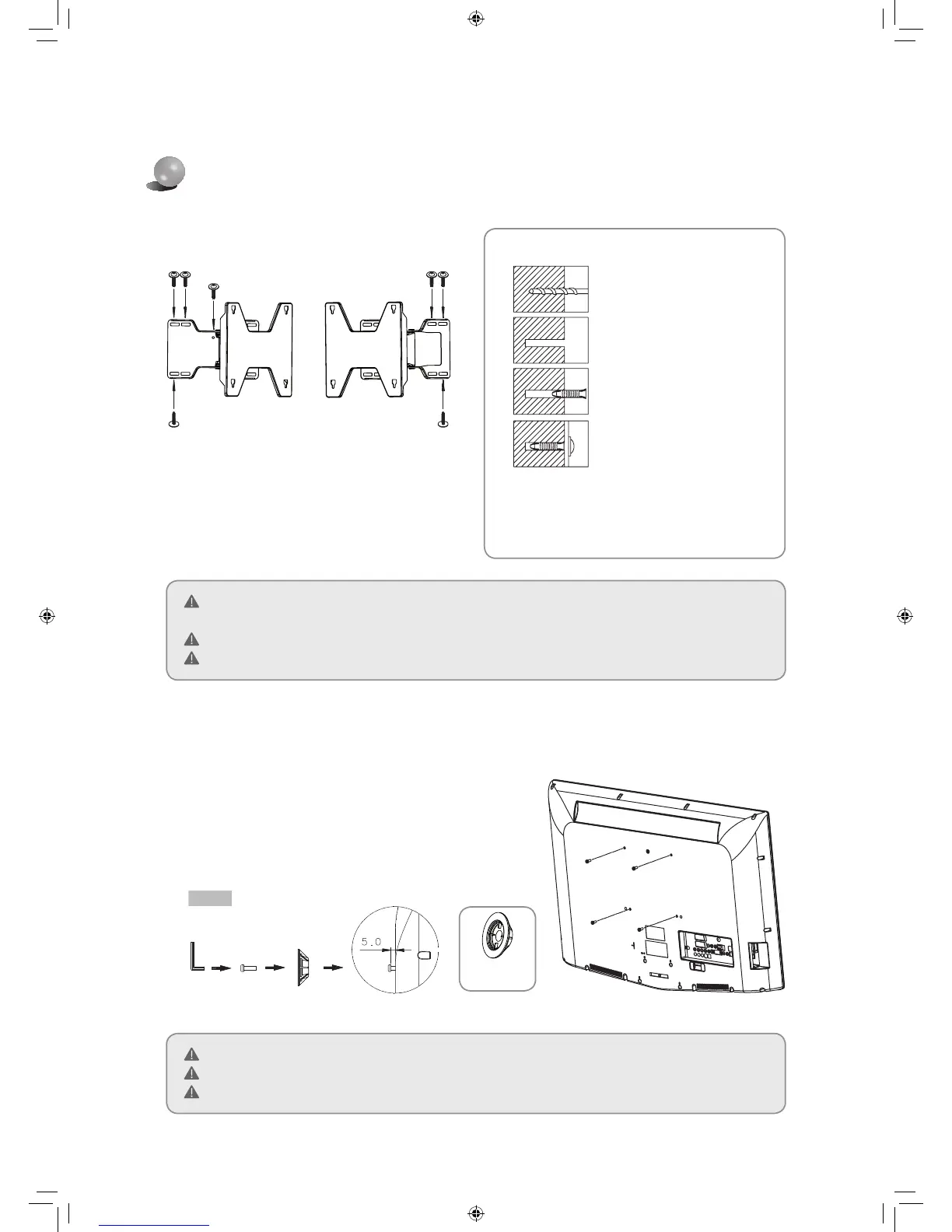 Check the solidity of the wall before the installation. Strengthen the wall and install the bracket if the wall is