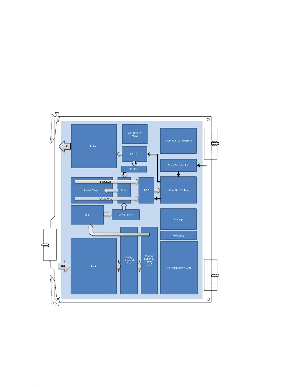 CW Board 에서는 System 동작을 위한 기본적 기능과 실질적인 Continuous Wave Doppler 기능