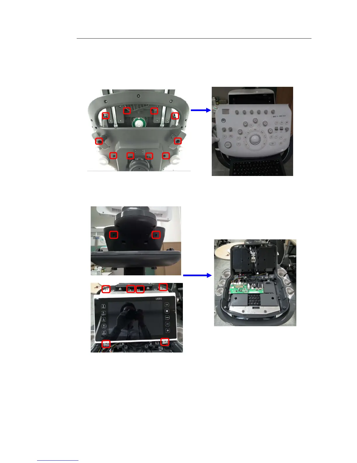 1. Remove 10 screws on the floor of the control panel and lift the CP module to detach.