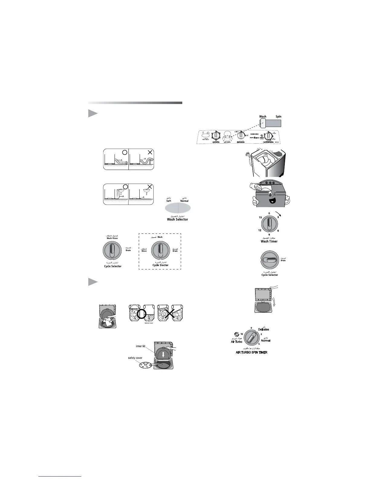 (In case no drain pump.) (‘WASH’ In case drain pump.)