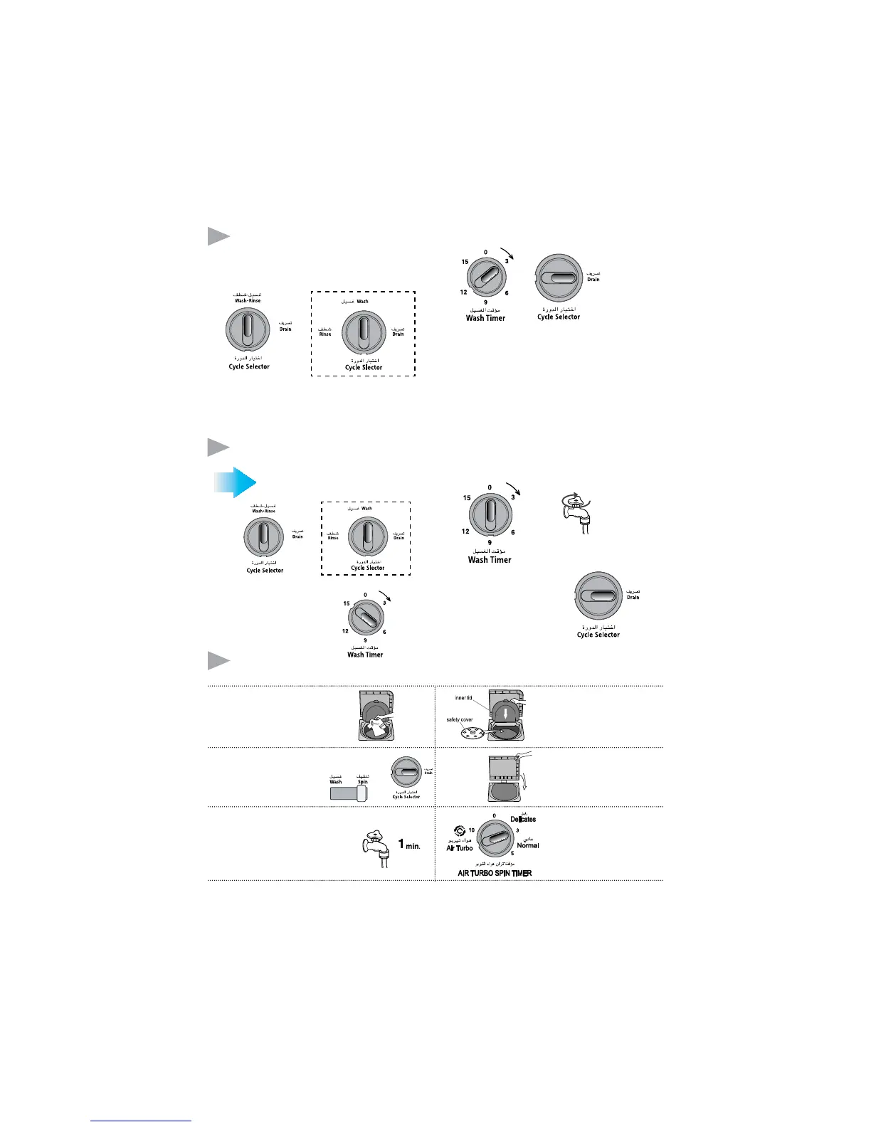 4. Drain the water.Set the CYCLE SELECTOR KNOB