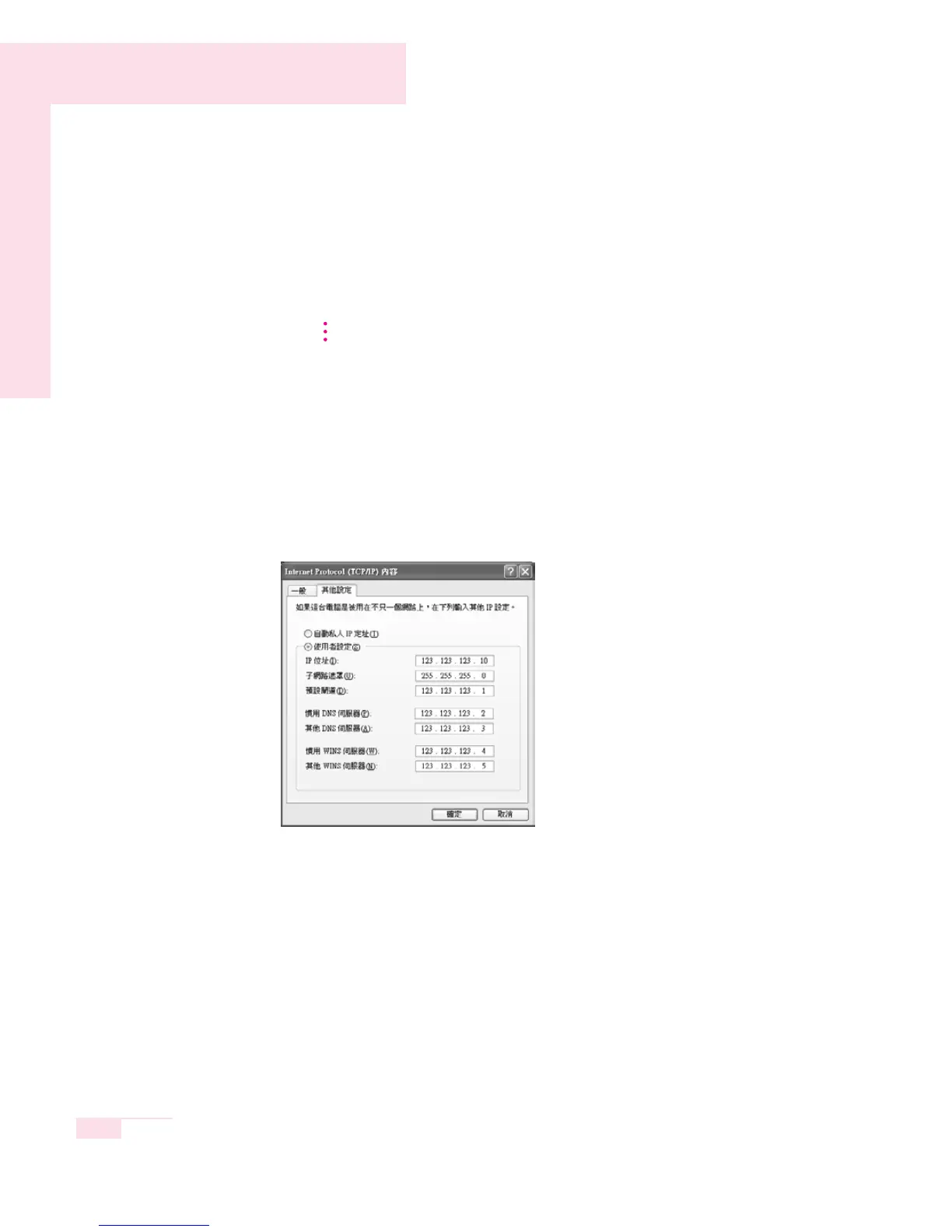 3. In the Alternate Configuration tab, click User configured, and then enter