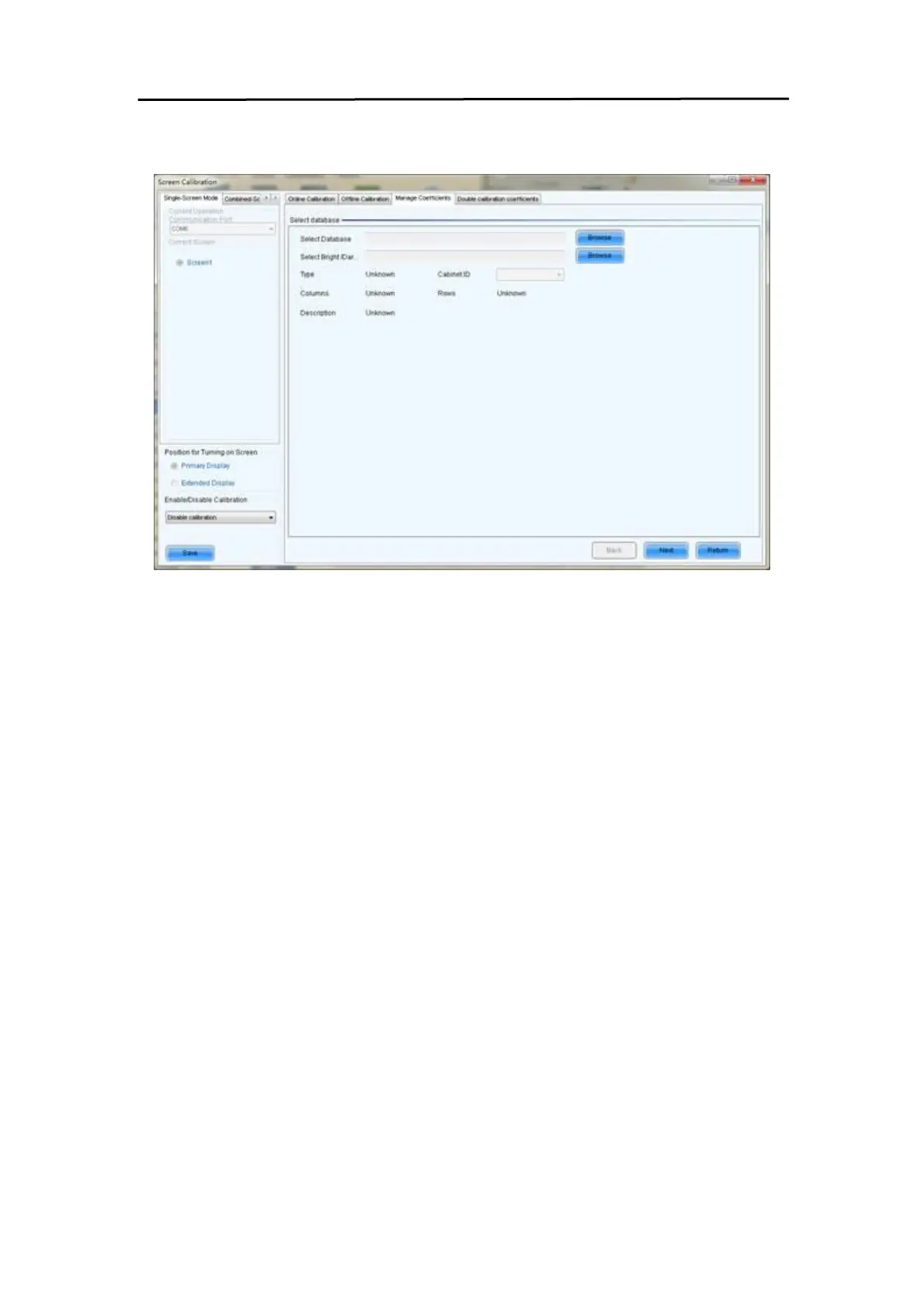 calibration coefficients for a whole display while a cabinet database contains calibration